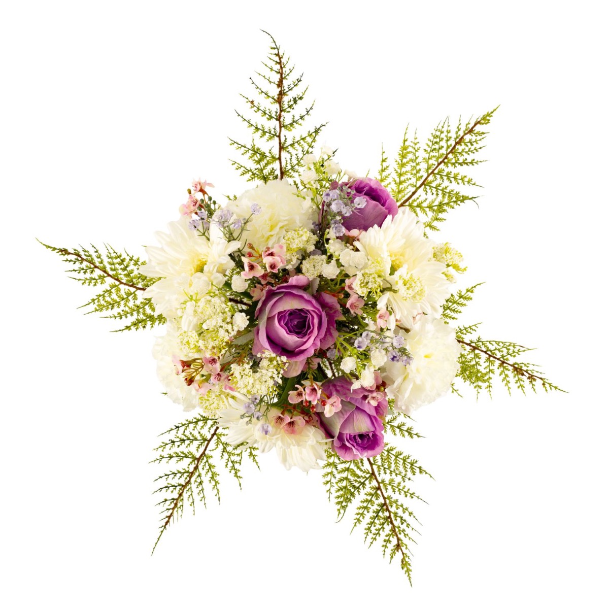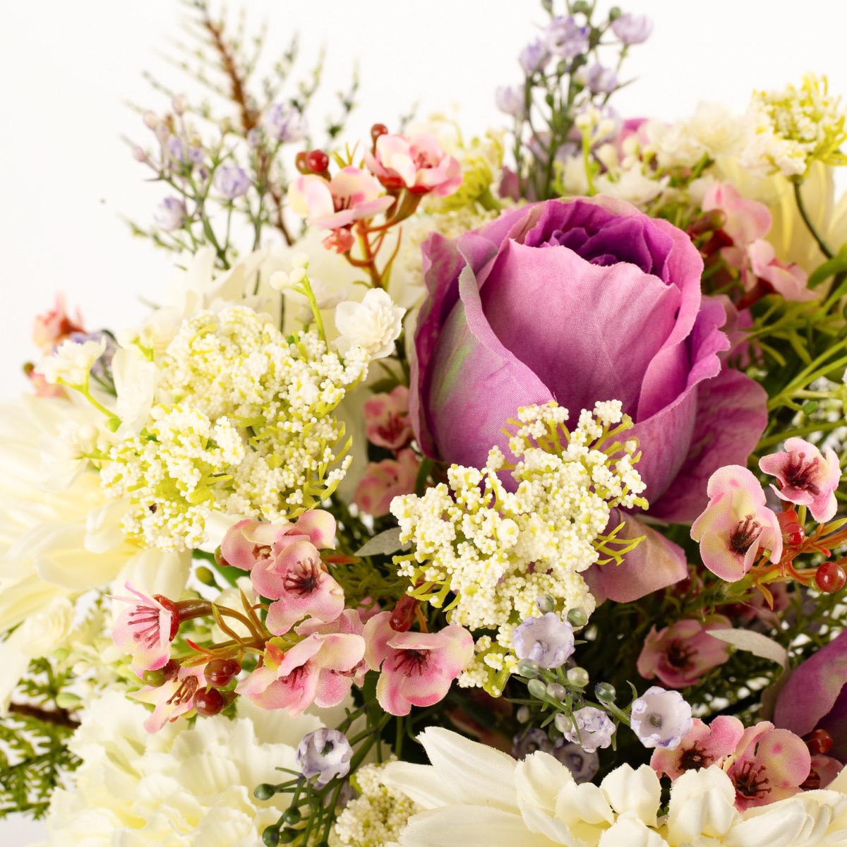 Hand-tied in Germany, this artificial bouquet MALIA consists of a perfectly matching flower combination. The flower bouquet is surrounded by yarrow and baby's breath and finished off with saisonal green of asparagus plumosus. The floral arrangement will be suitable for many occasions, such as for Mother's Day, Women's Day, birthday or simply as a small gift for any loved one.