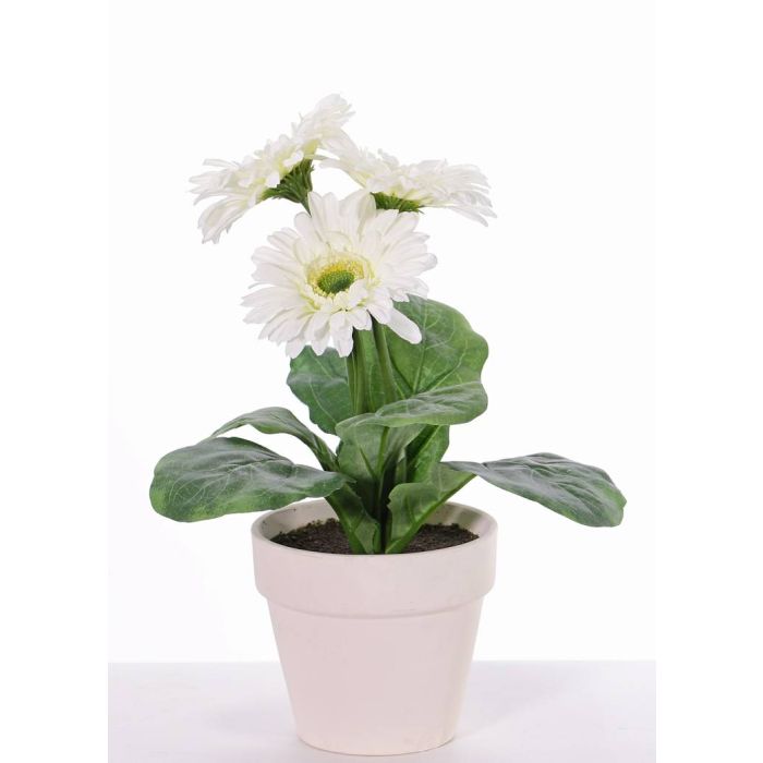 Artificial gerbera SIMONE in decorative pot, white, 12"/30cm, Ø3.7"/9,5cm