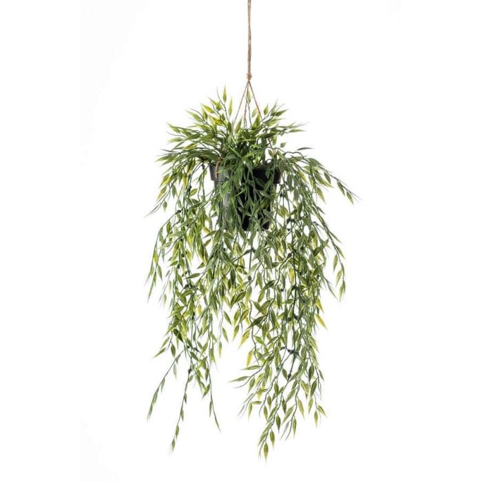 Artificial hanging basket with bamboo ANDRES in decorative pot, 20"/50cm