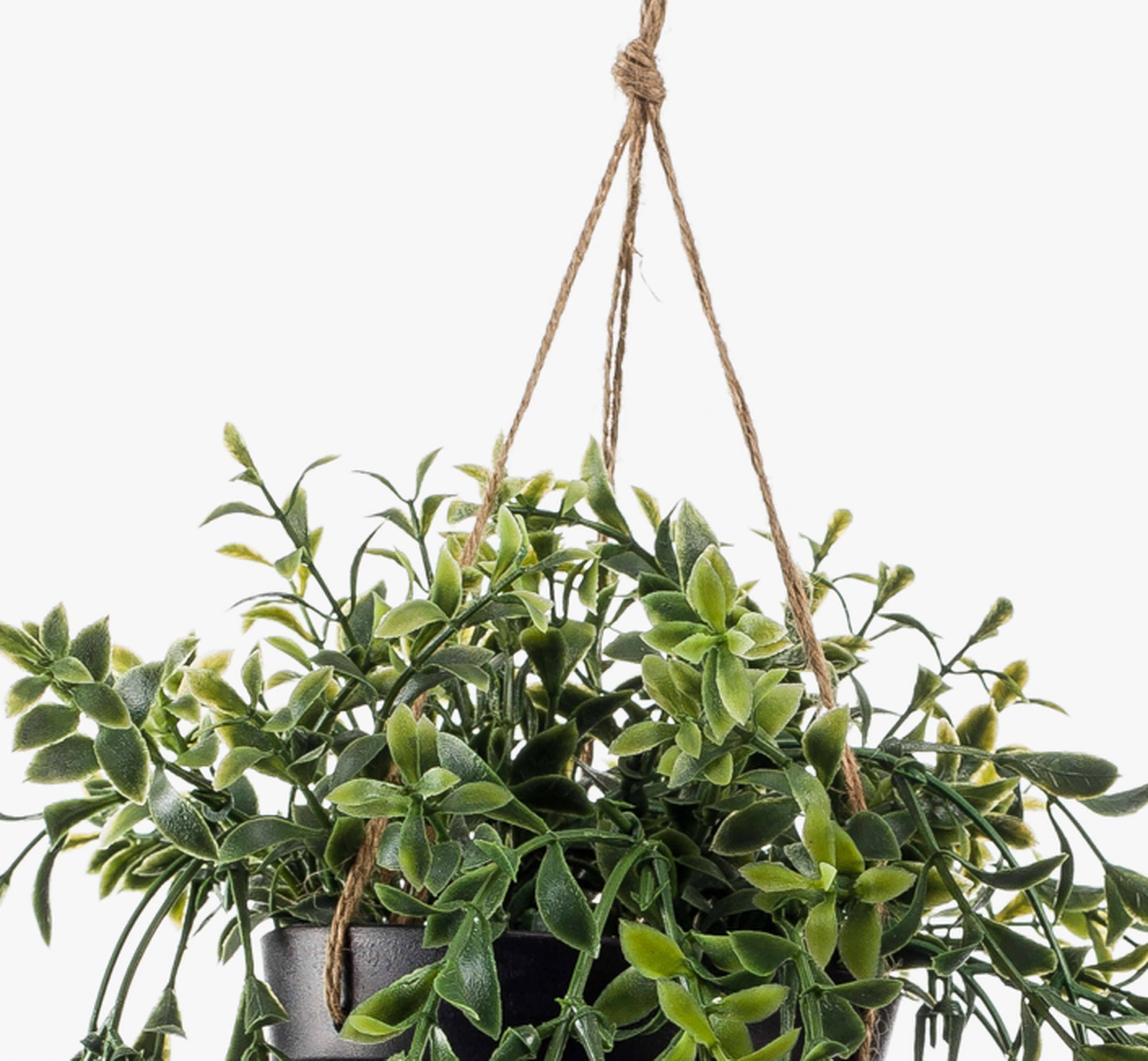Artificial hanging basket with boxwood ANDRES in decorative pot, 20"/50cm