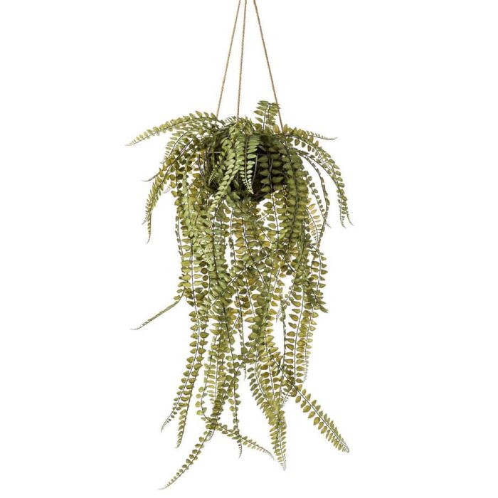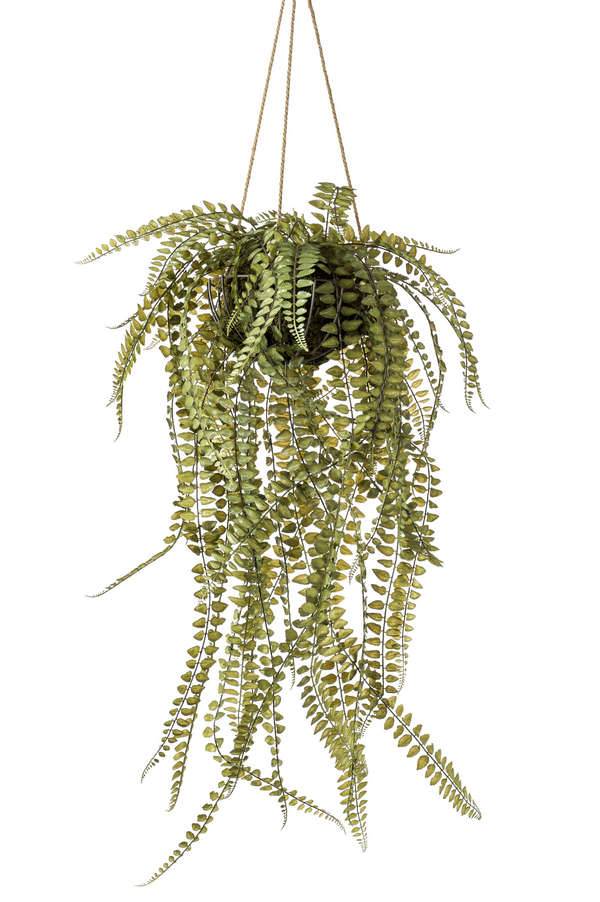 Decorative artificial fern SAMIEL for hanging. In combination with a indoor fountain, you can create a tropical atmosphere in your winter garden, sauna area or entrance hall.