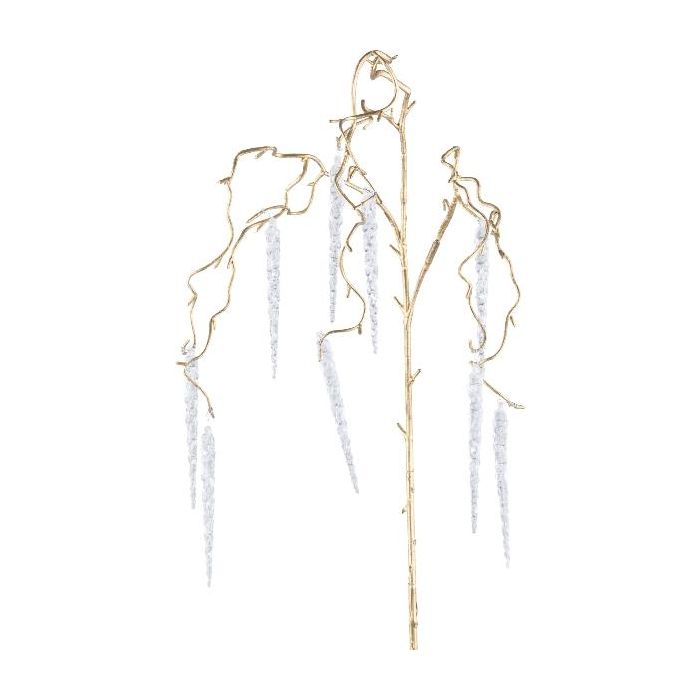 Artificial hazel branch MONDEL with icicles, hanging, gold, 4ft/115cm