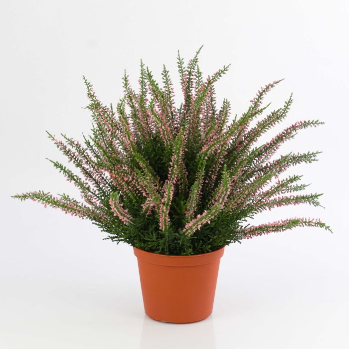 Fake Heather bush ELANI in colour white-pink. The Heather bush is approx. 14"/35 cm high and is supplied in a small pot.