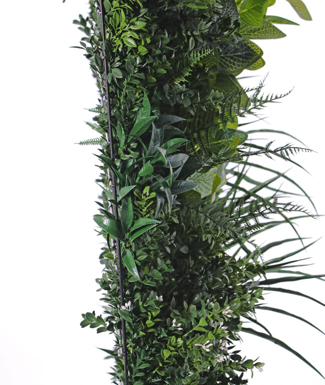 - Consisting of fittonia, lavender, reed grass, boxwood, sword fern and laurel