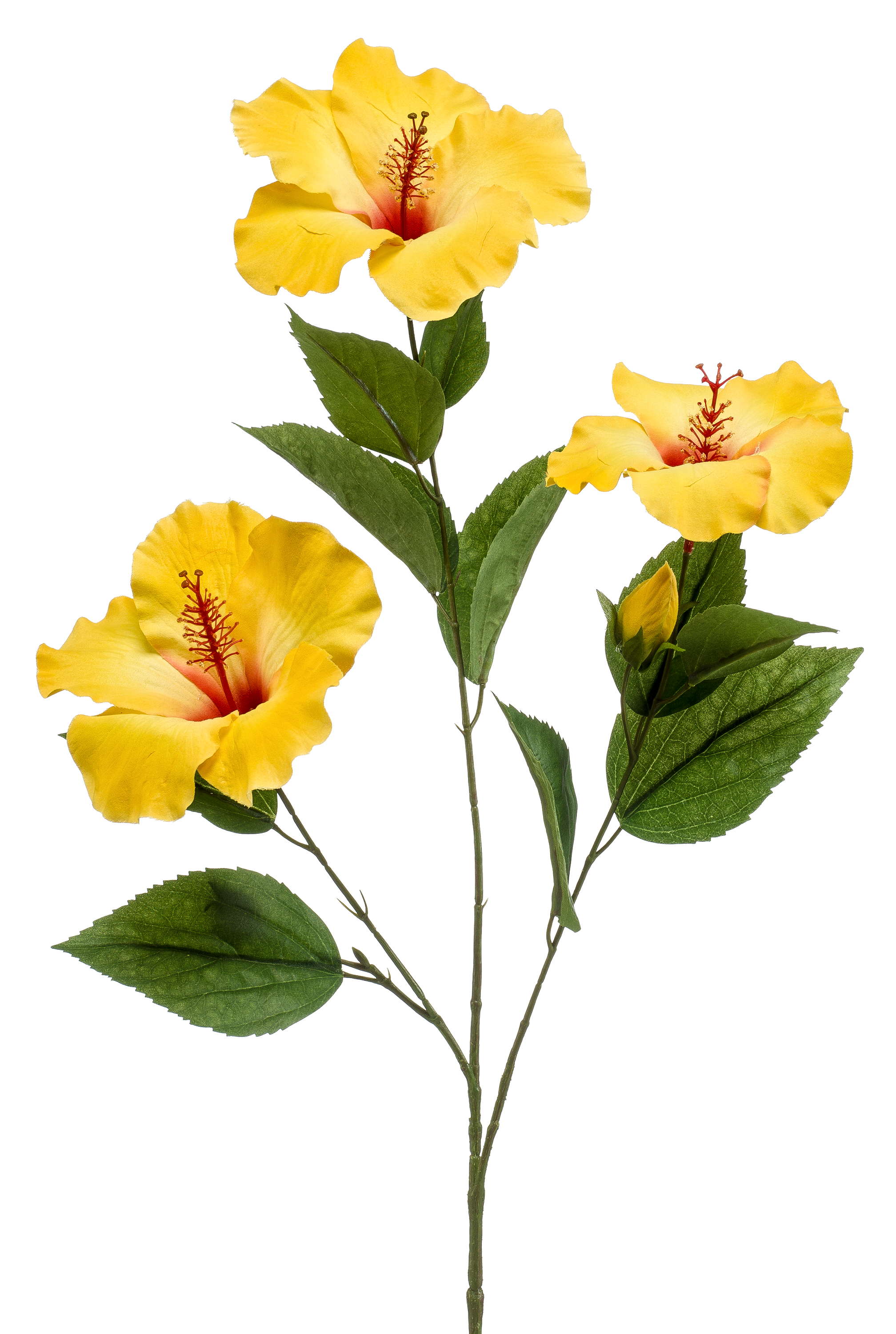 Artificial hibiscus branch AMADOU with flowers, yellow, 31"/80 cm
