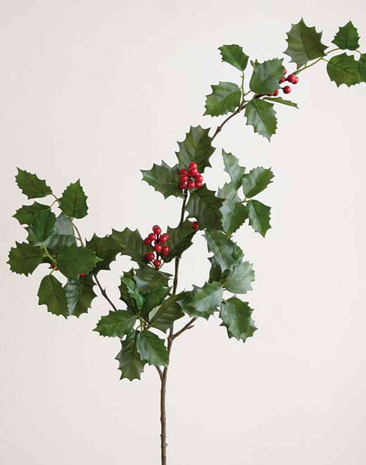 Artificial holly branch YUKARI with berries, green, 3ft/100cm
