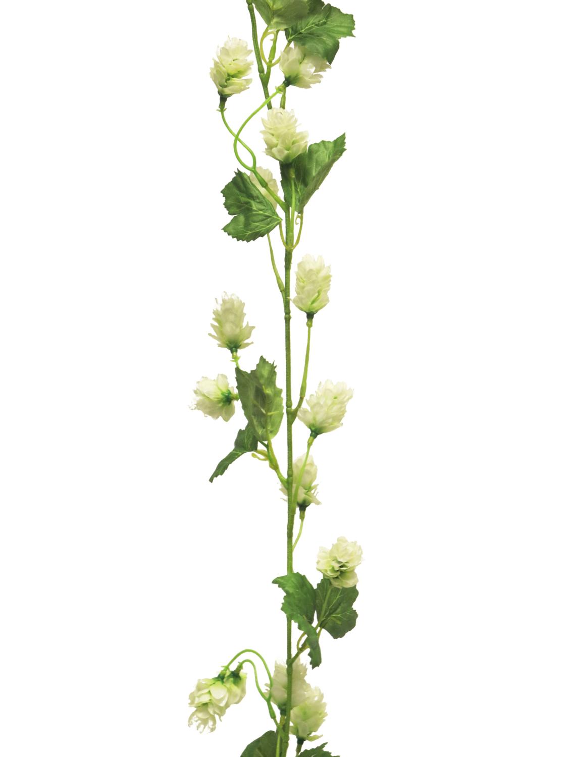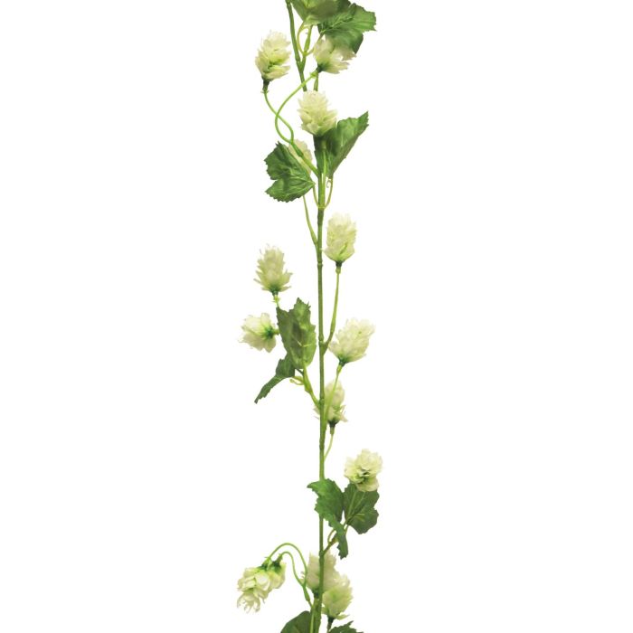 Artificial hop garland MUYOU with blossoms, cream, 6ft/180cm