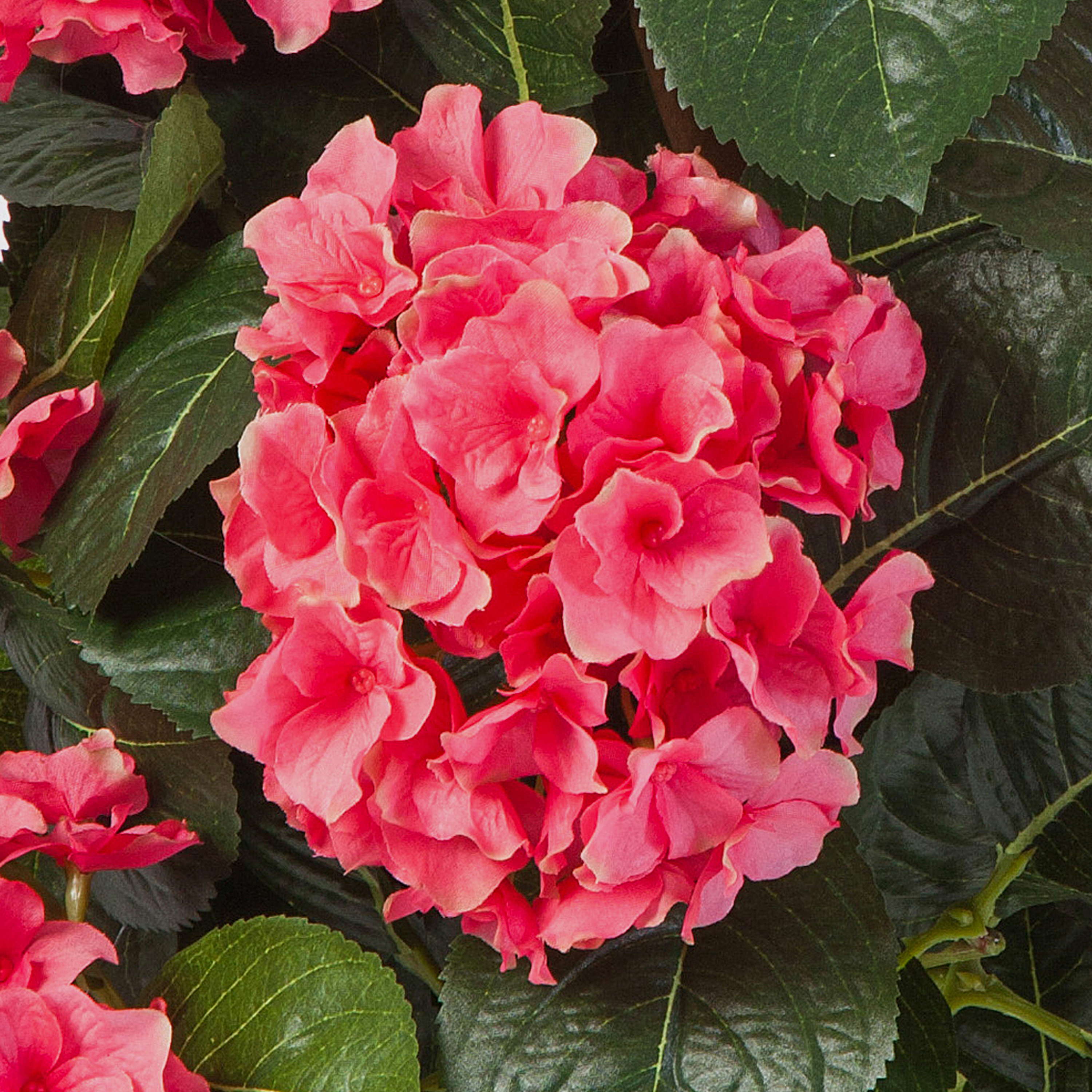 Silk hydrangea HARUKA will immediately catch your eye due to its splendid colours. The approx. 24"/60 cm large artificial hydrangea is characterised by a lifelike design thanks to the fine workmanship of the green leaves and the great attention to detail of the flower umbels.
