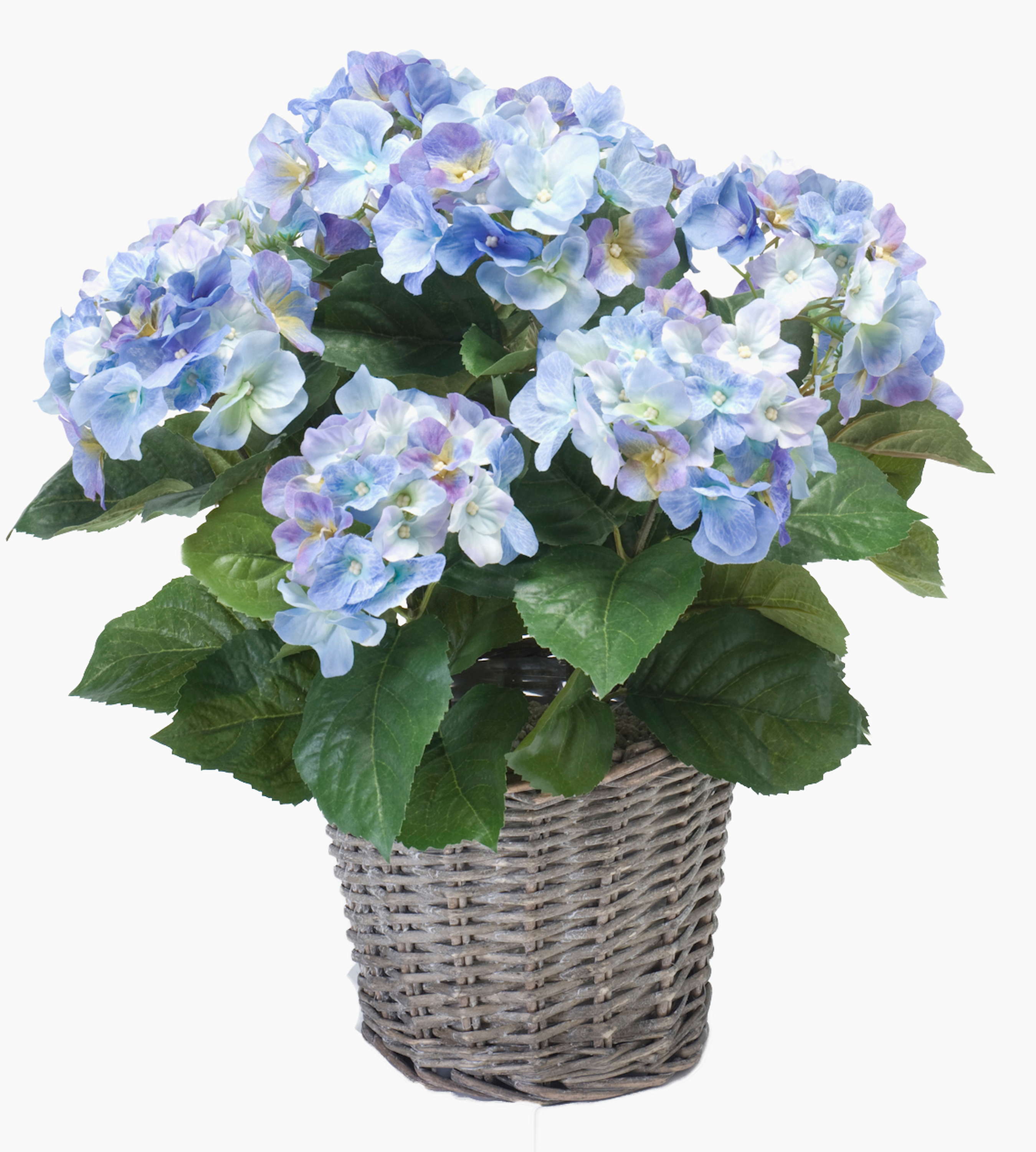 Artificial hydrangea JONE in basket, blue, 18"/45cm