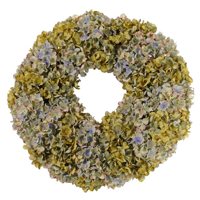Artificial hydrangea wreath DARDANOS, green-blue, Ø18"/45cm