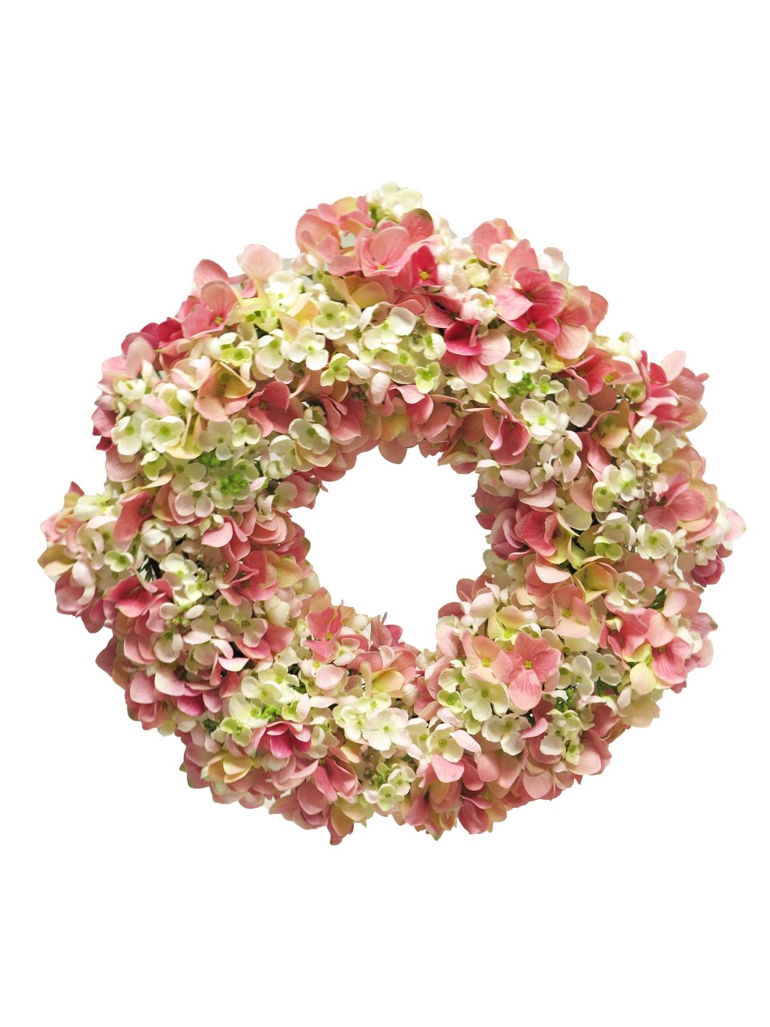 Artificial hydrangea wreath MUSHANA, pink-cream, Ø16"/40cm