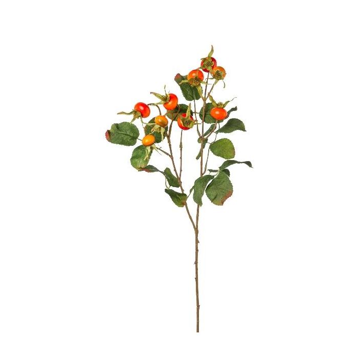 Artificial Japanese rose branch DROVLE with rose hips, orange, 24"/60cm