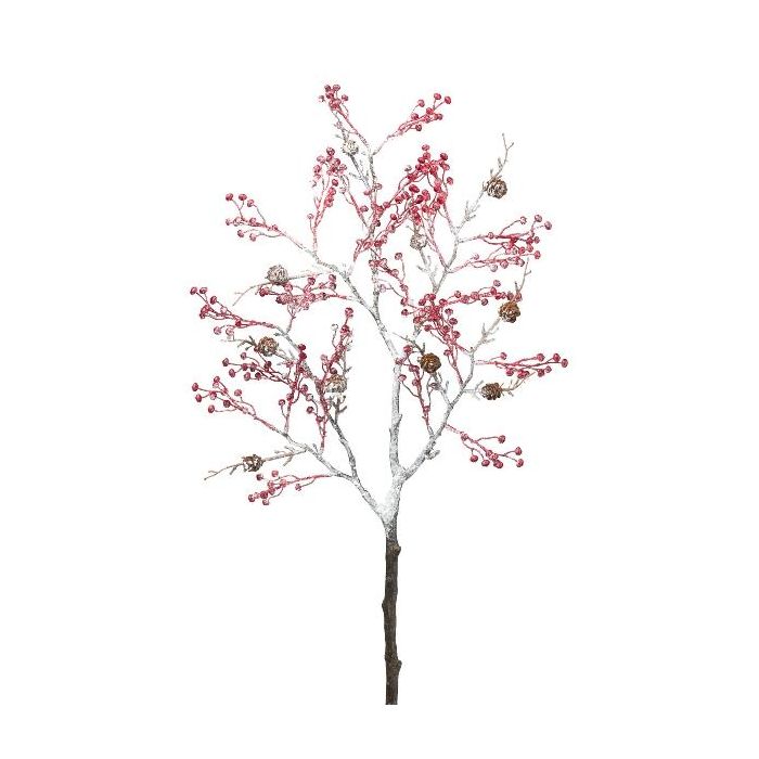 Artificial juniper branch BLANTOR, berries, cones, frosted, white, 31"/80cm
