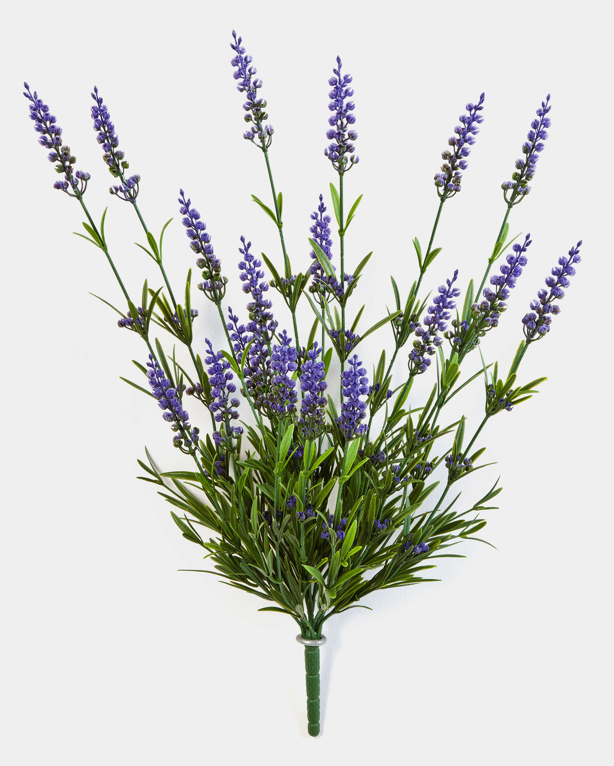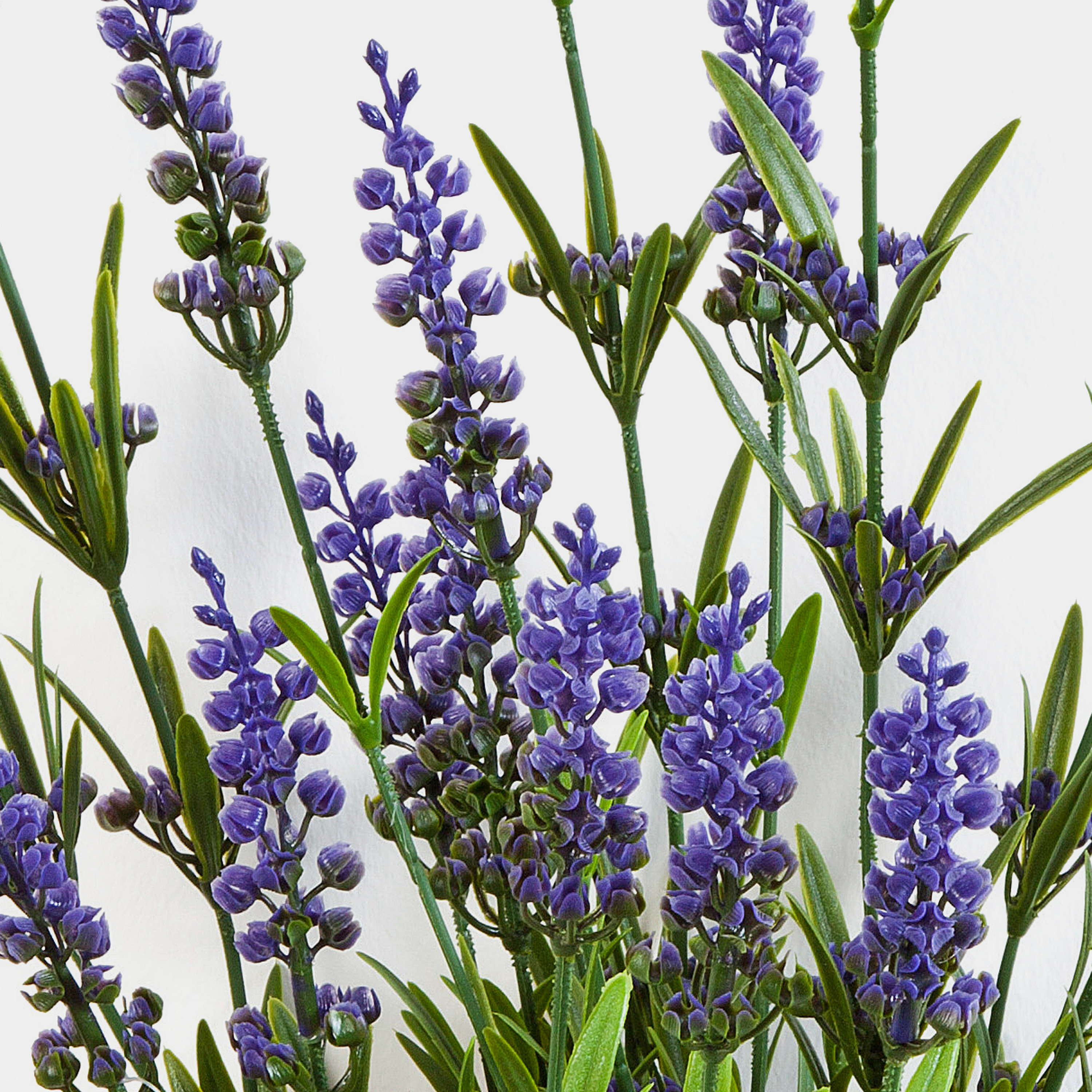 The fake lavender MARINA is attached to a spike and stands approx. 20"/50 cm high. The artificial plant possesses purple flowers and oblong dark green leaves.