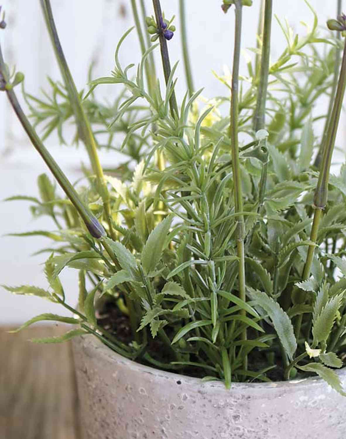 The fake lavandula angustifolia FIORA in violet colour has a total height of 35 cm. The artificial plant creates a pleasant room atmosphere and is delivered in a terracotta pot.