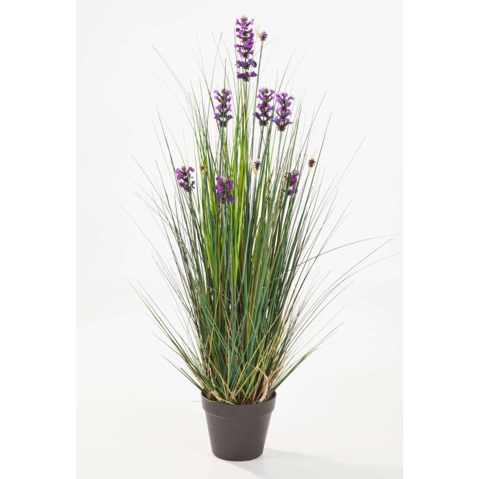 Fake Lavender grass FREDERICA with 11 purple flower panicles. The grass consists of approx. 575 blades and stands approx. 3ft/90 cm high.