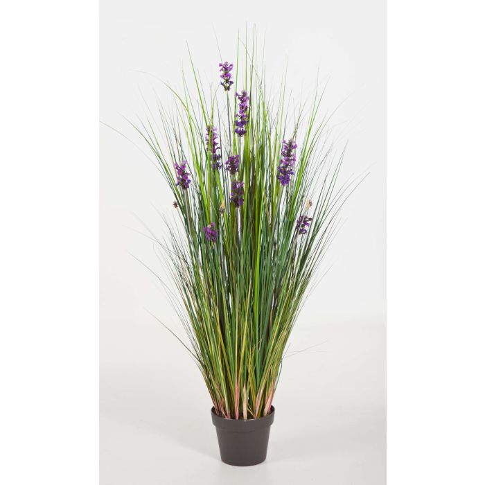 Artificial Lavender grass FREDERICA with 12 purple flower panicles. The grass consists of approx. 875 blades and stands approx. 4ft/120 cm high.