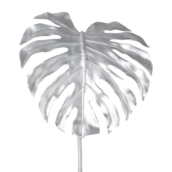 Artificial leaf Philodendron Monstera Deliciosa MENKIS, metallic silver, 3ft/90cm