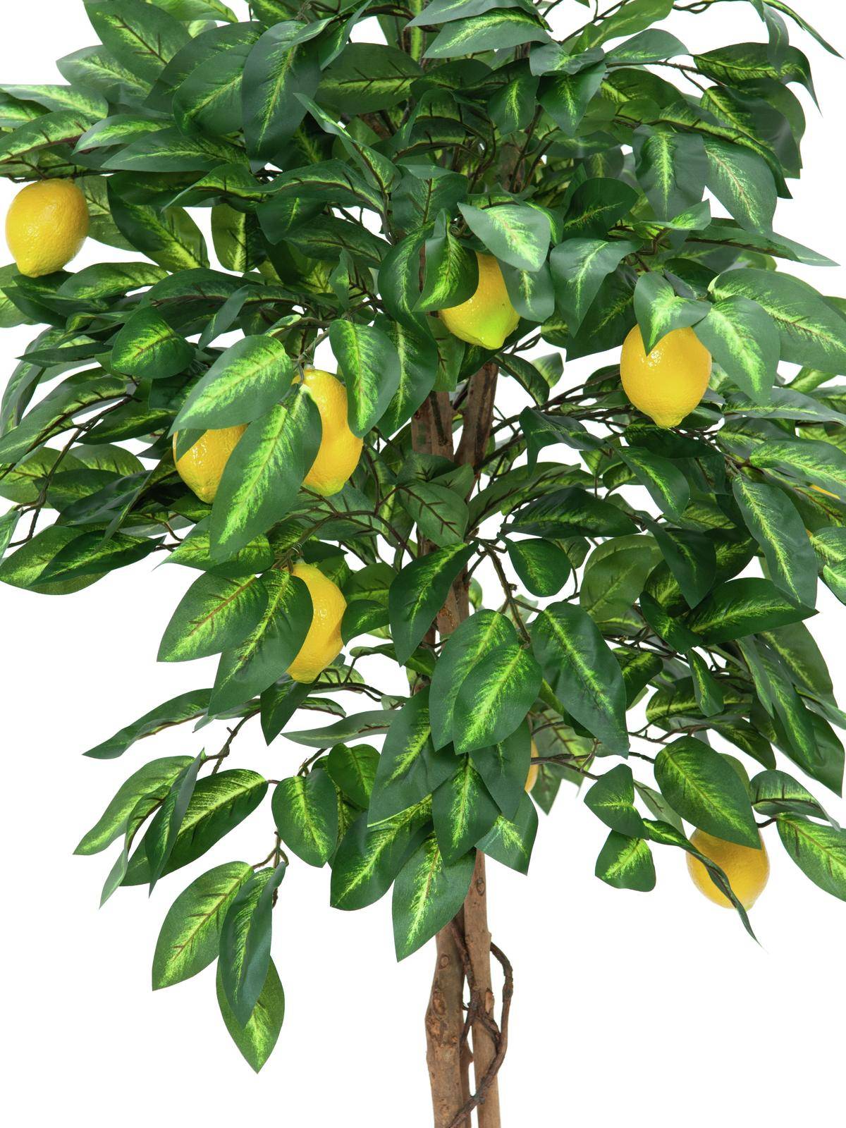 Decorative lemon tree ZOYA is potted with several natural stems. The citrus tree stands with its 1,000 leaves approx. 5ft/150 cm high.