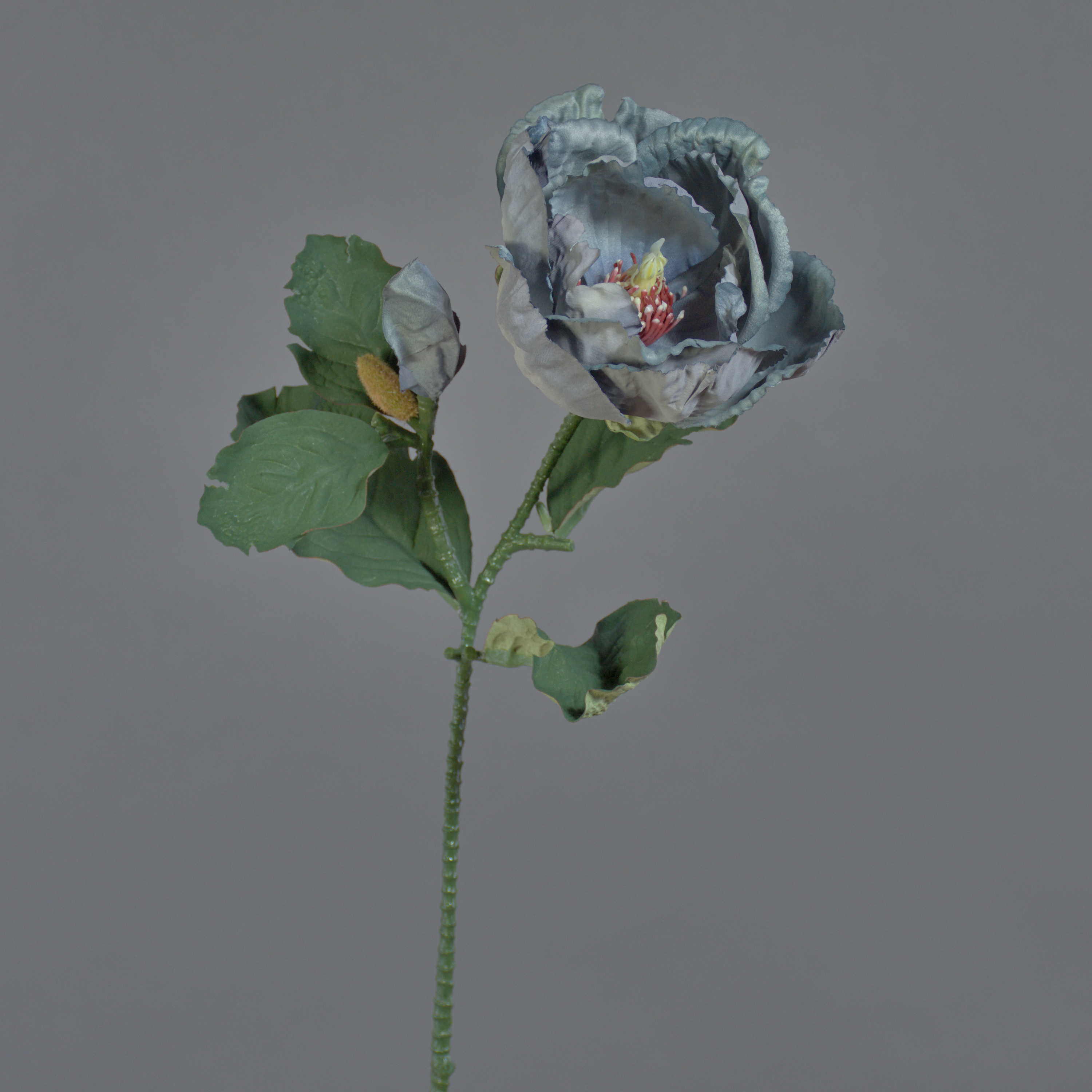 Artificial magnolia flower GARETHO, Eco Collection, grey-blue, 28"/70cm, Ø4"/10cm