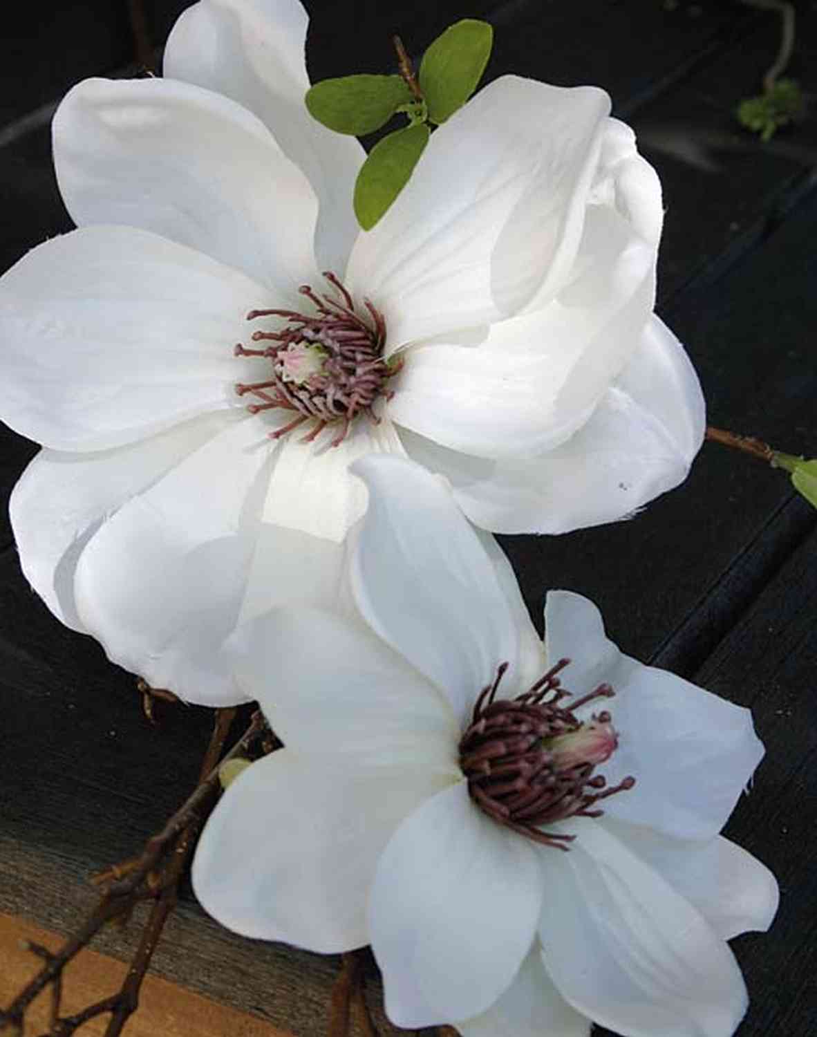 The fake magnolia flower branch FINAH in colour cream-white with a total height of approx. 3ft/90 cm will add a touch of style to your living space.