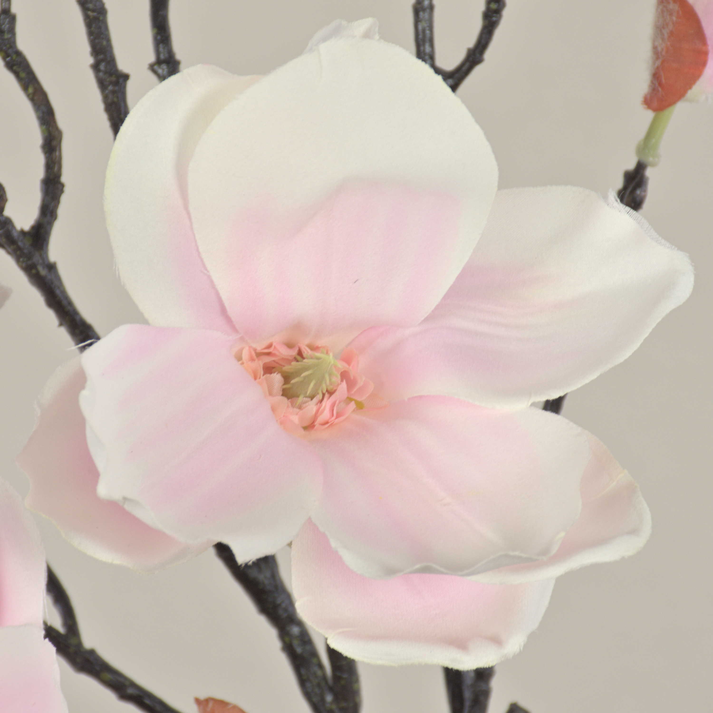 The artificial magnolia blossoms YONA in colour white-light pink with a total length of 4ft/130 cm will add a touch of style to your living room.