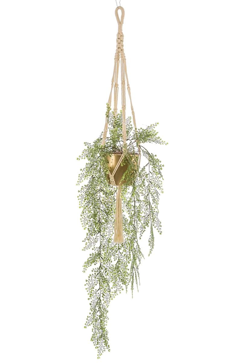 Artificial maidenhair fern hanging basket ATHELSTAN, golden ceramic pot, green, 3ft/105cm