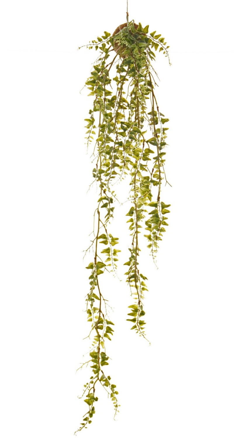 The artificial tendril ALEXIAN in colour green has a total size of approx. 3ft/90 cm and is attached to a moss ball.