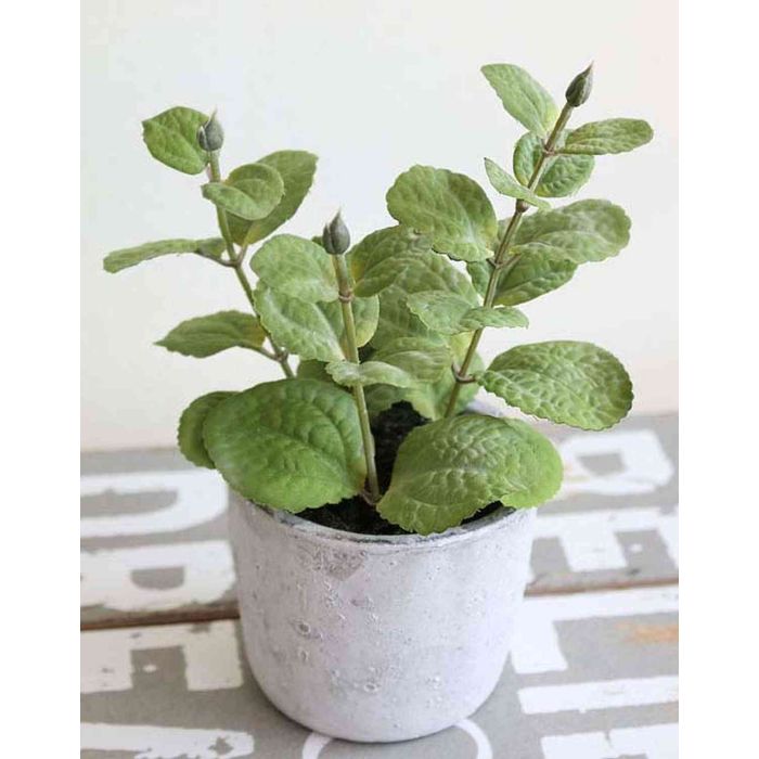 Artificial Mint ALBUS in concrete pot, green, 6.7"/17cm