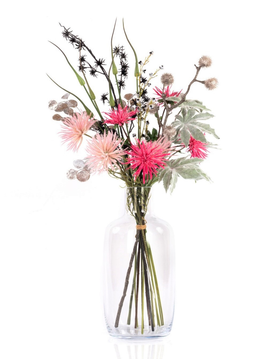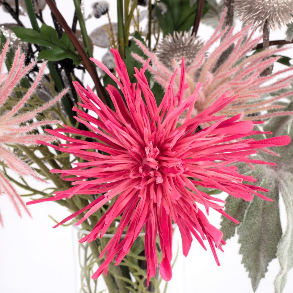 Artificial New Year's Eve Bouquet KAAMI, Chrysanthemum, fuchsia-silver, 3ft/90 cm, Ø 18"/45 cm