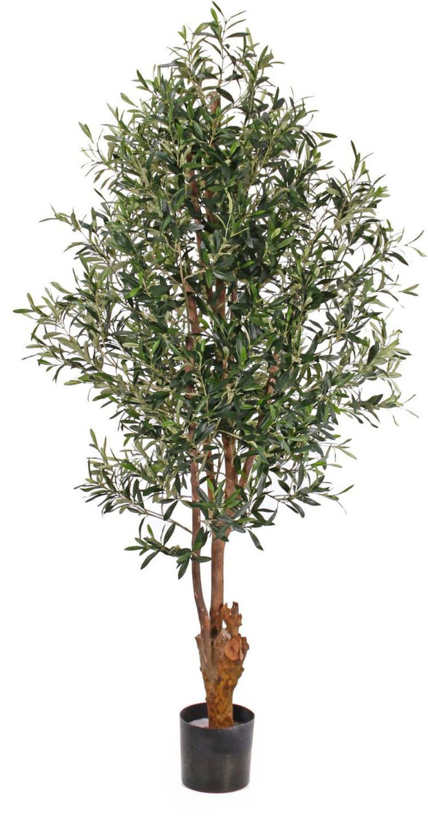 Fake olive tree FINLOR with a height of approx. 170 cm. The tree has approx. 4,160 leaves and 120 olives.