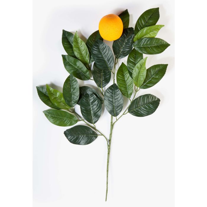 Fake Orange tree foliage spray ADRIANA with an orange and 24 leaves. The spray measures approx. 24"/60 cm in length.