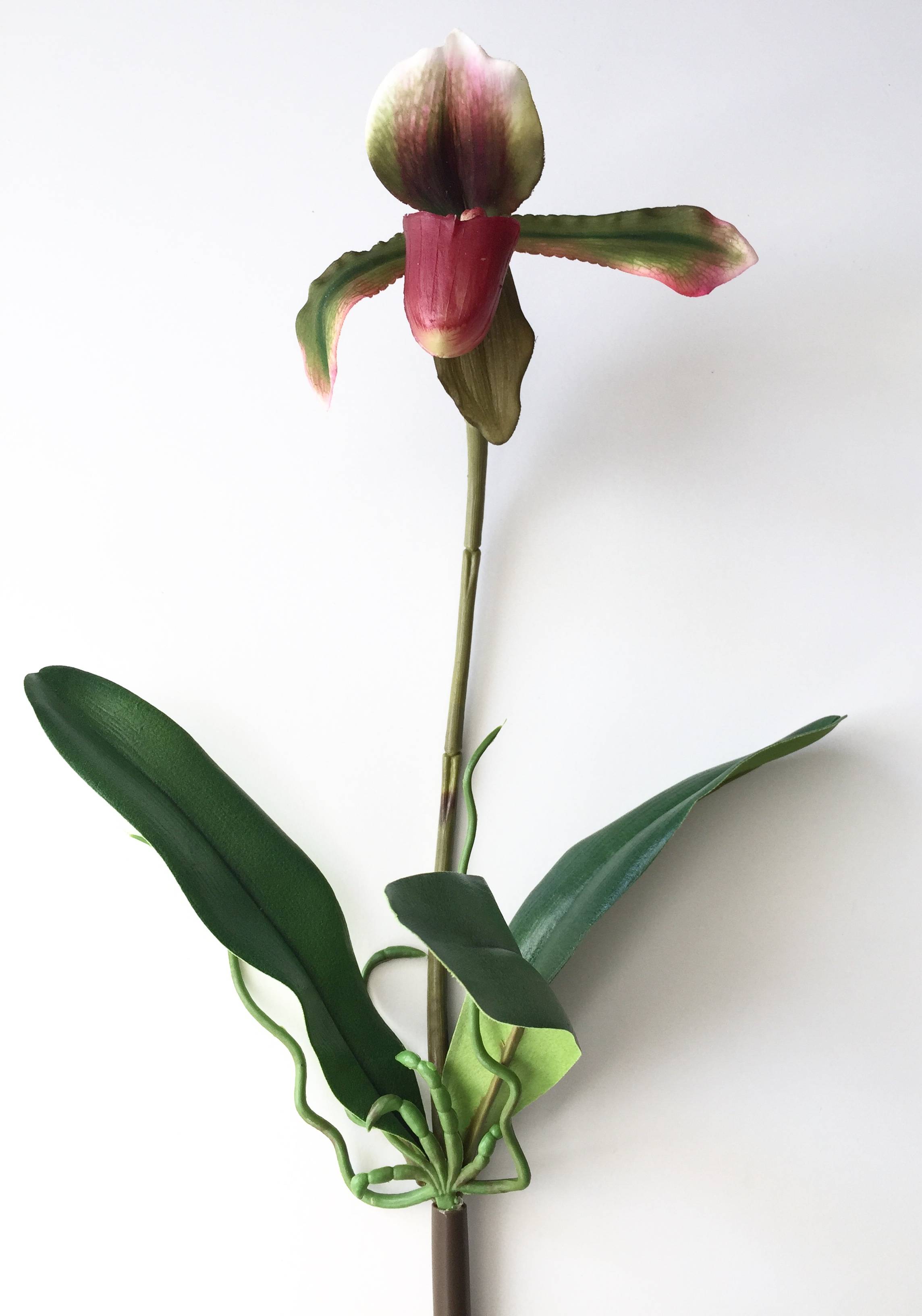 Fake orchid Venus slipper (Paphiopedilum) VELANA on stick