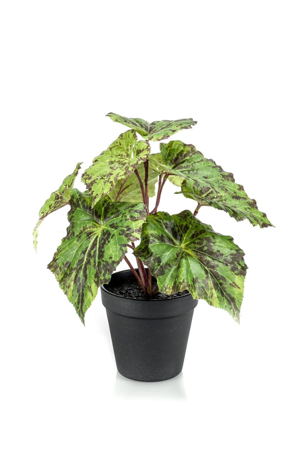 Artificial painted-leaf begonia MEIRA, green-black, 10"/25cm