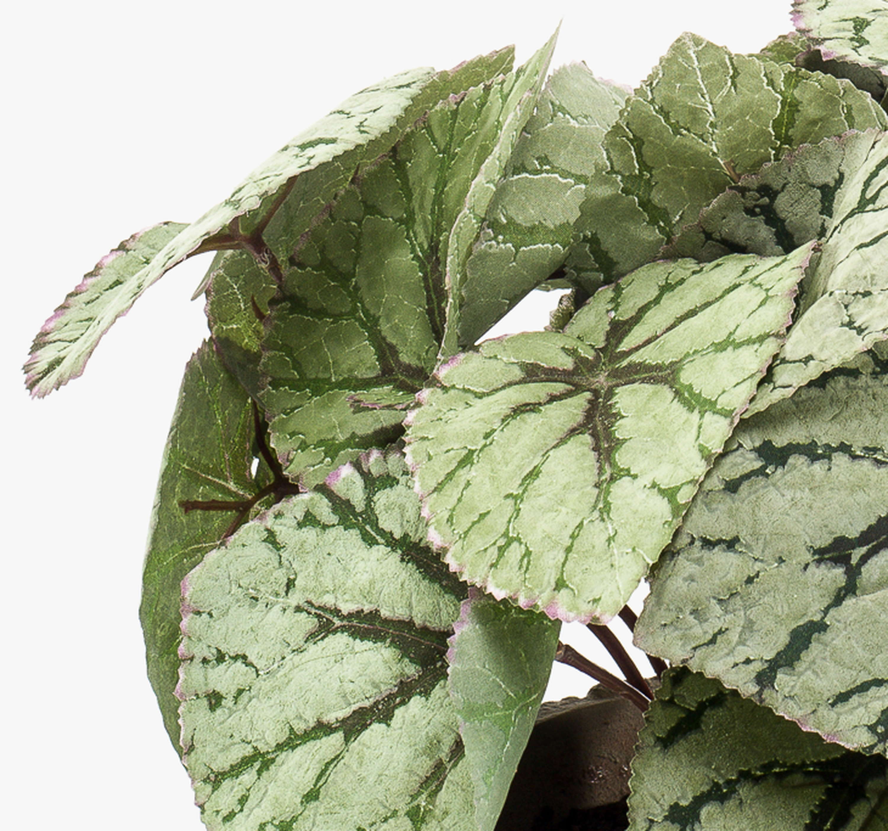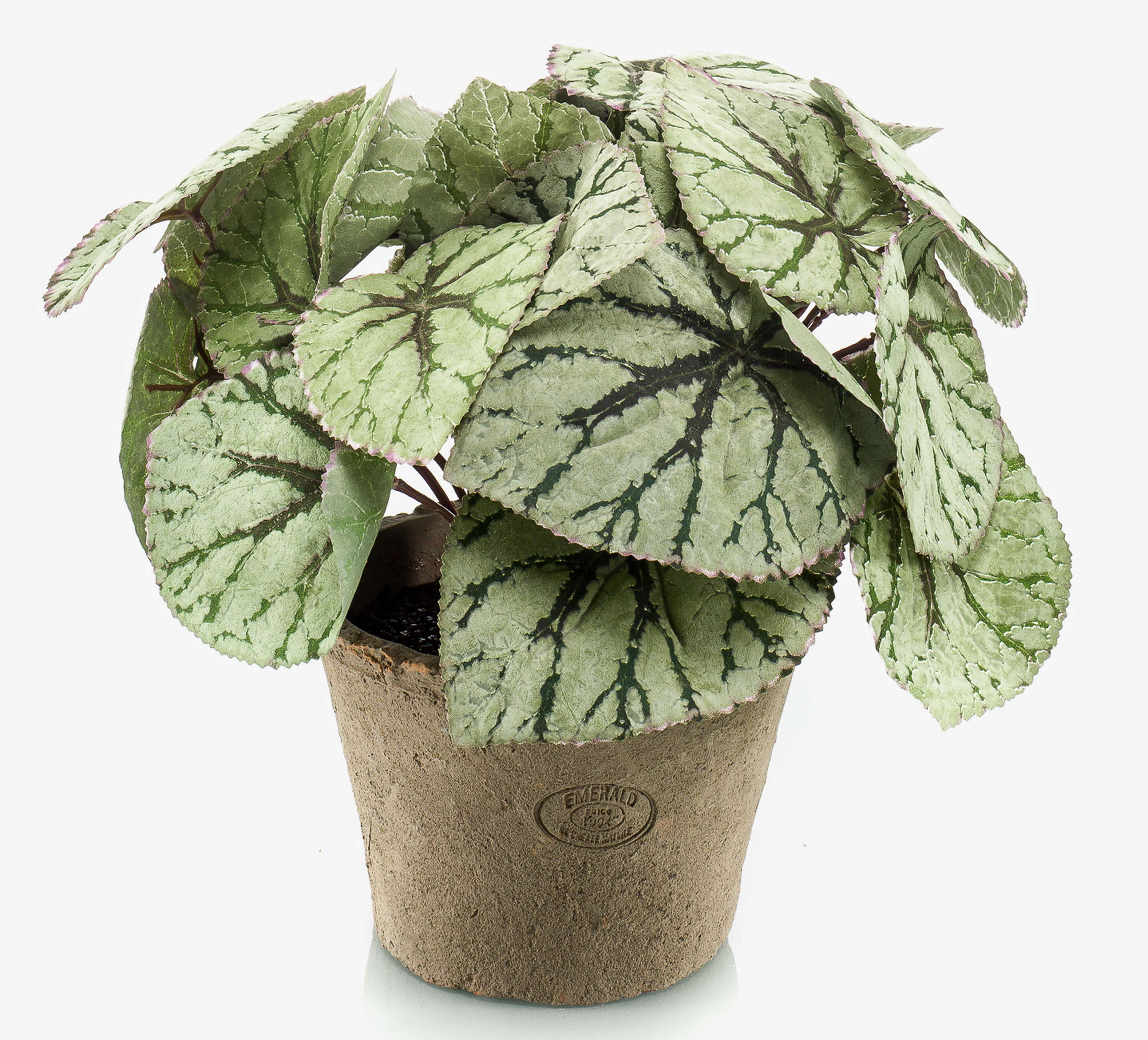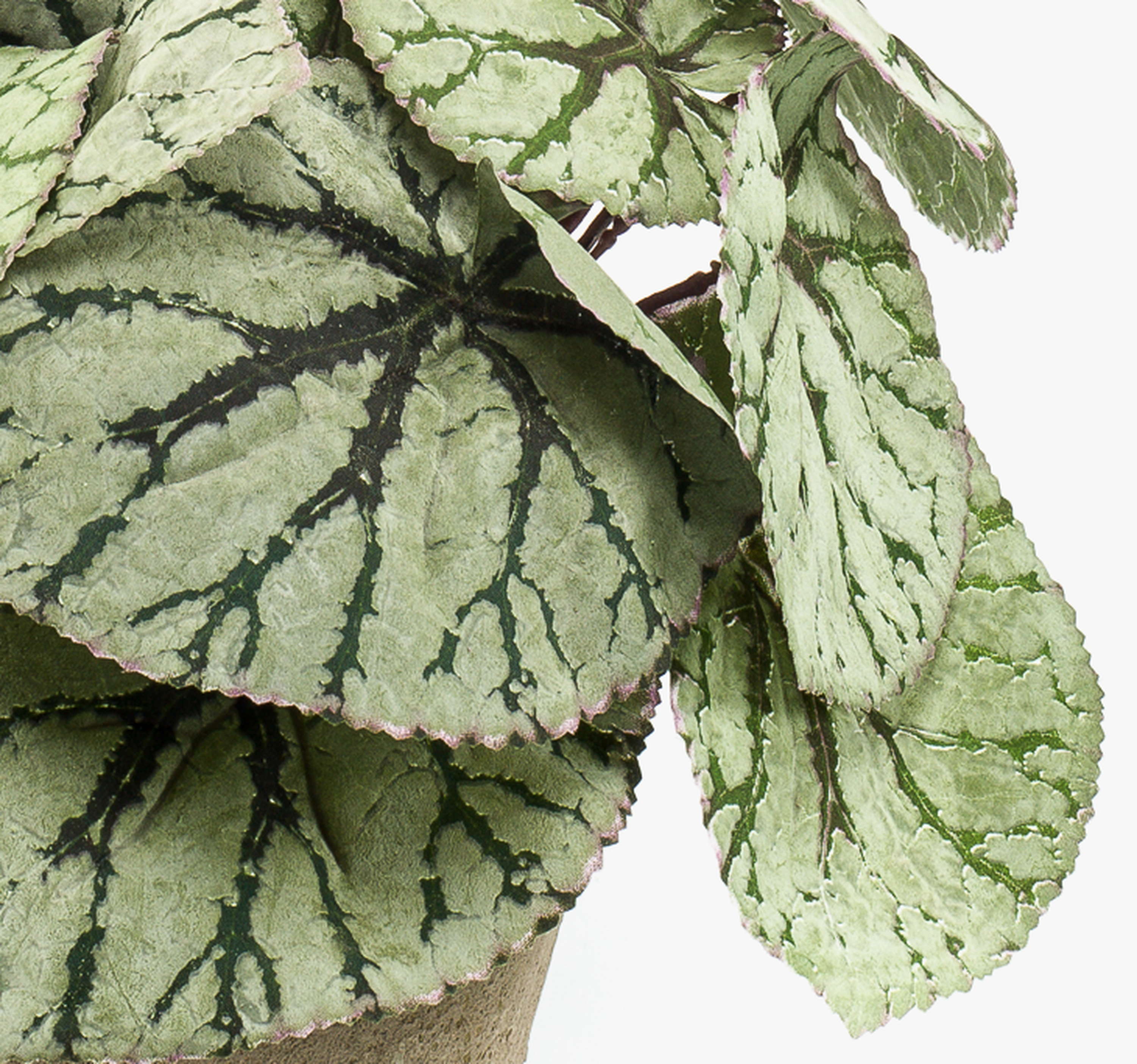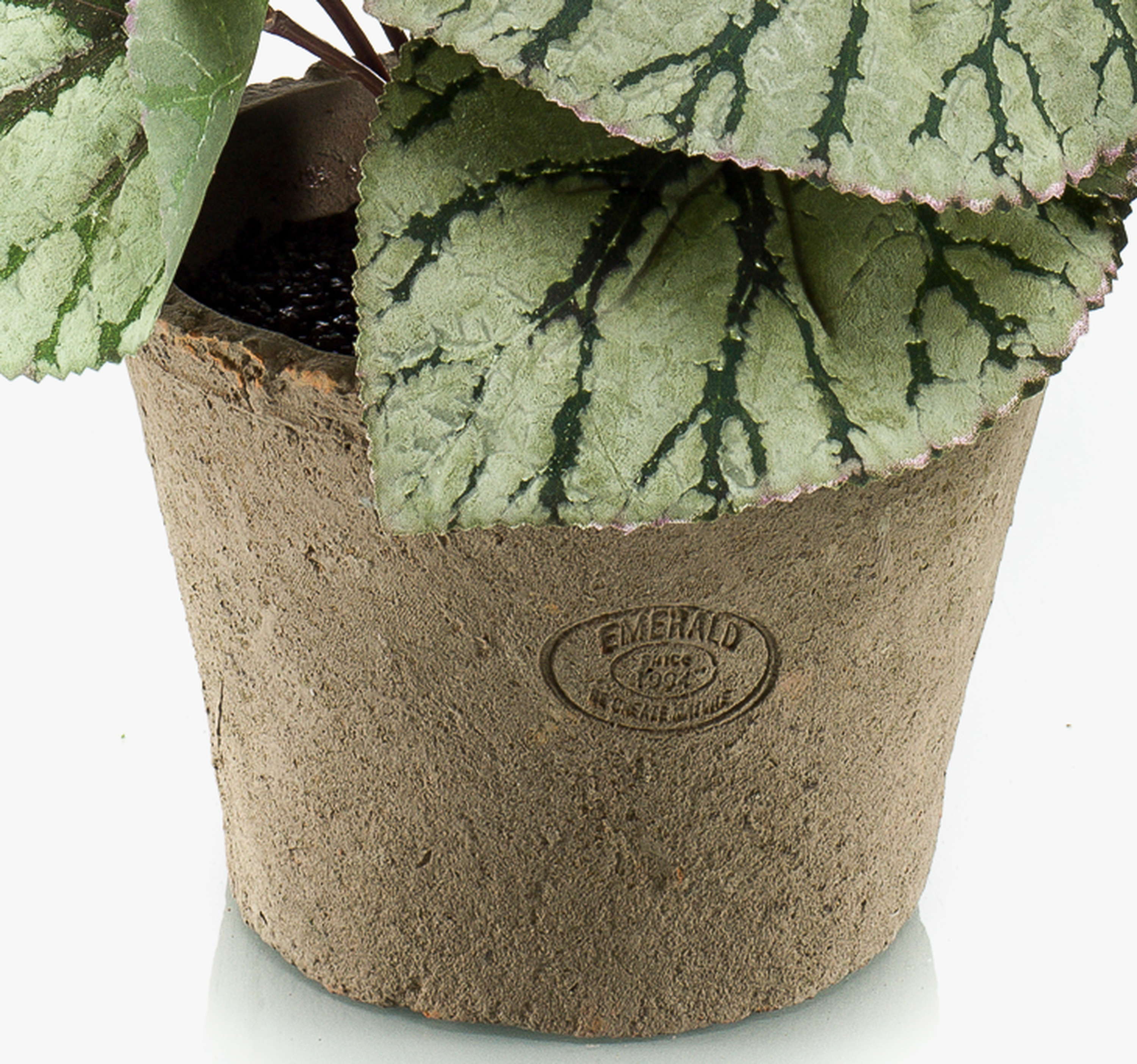 Artificial painted-leaf begonia MEIRA in terracotta pot, bushy, green-grey, 10"/25cm