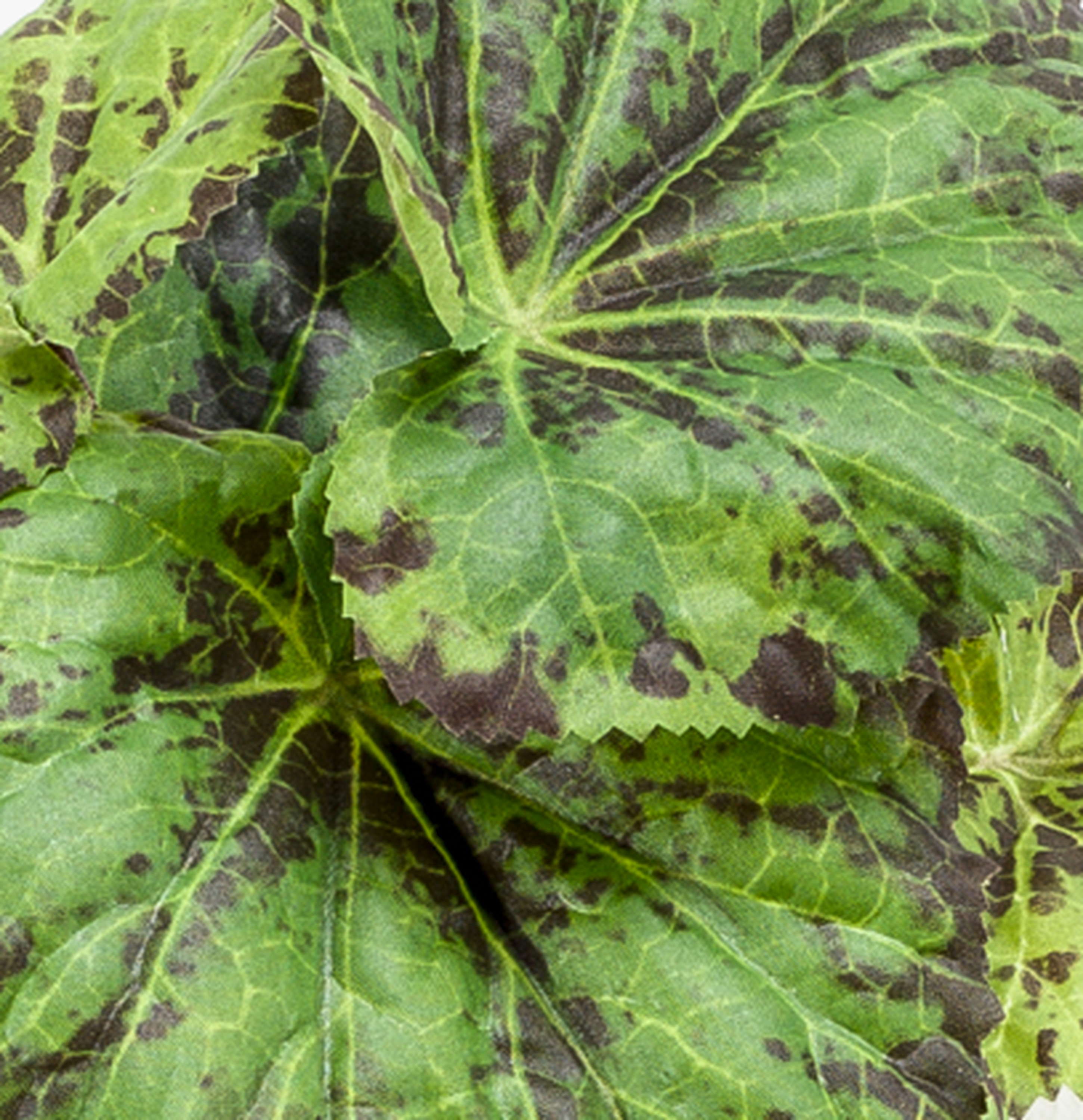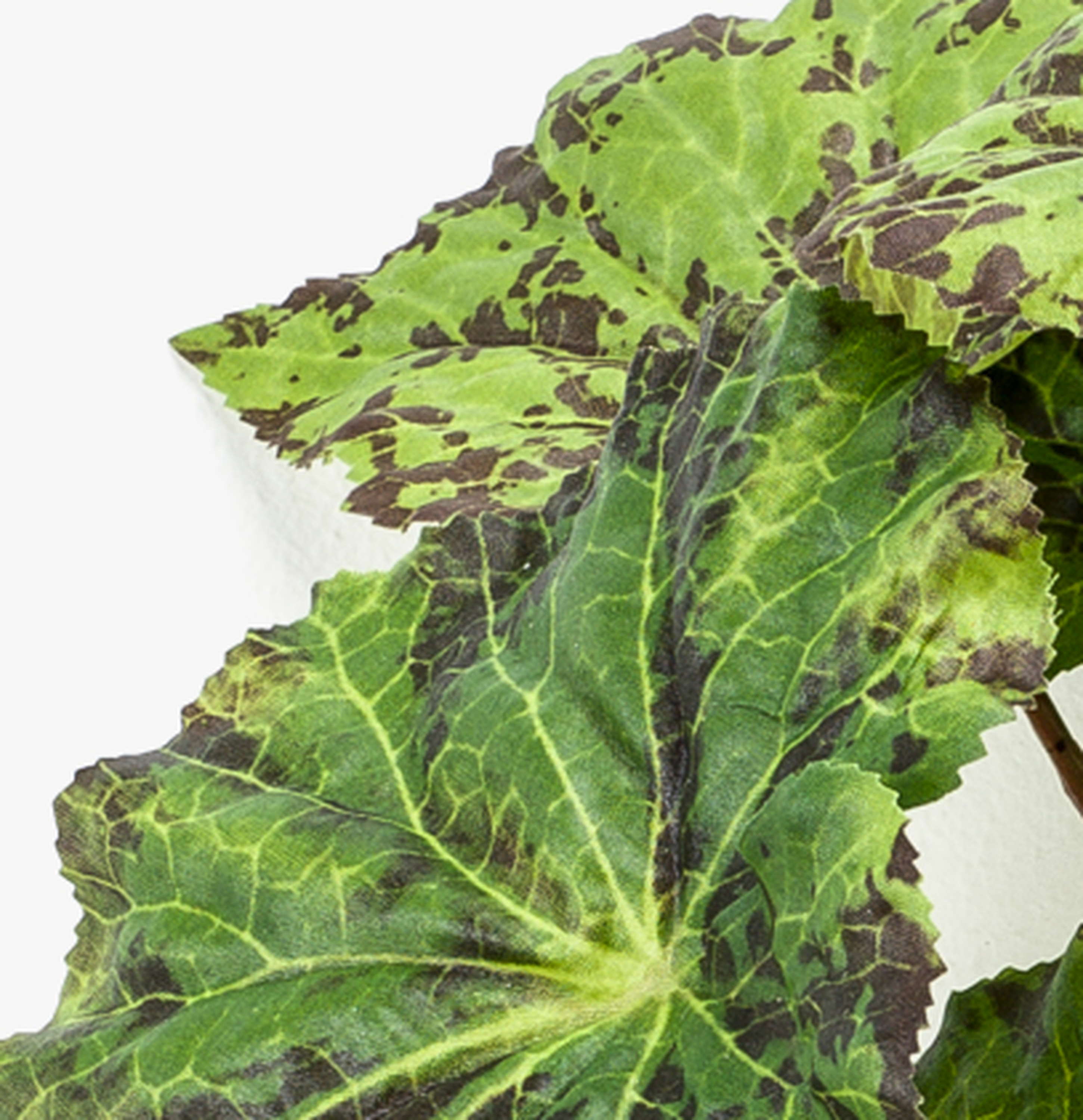 Artificial painted-leaf begonia MEIRA on spike, green-black, 10"/25cm