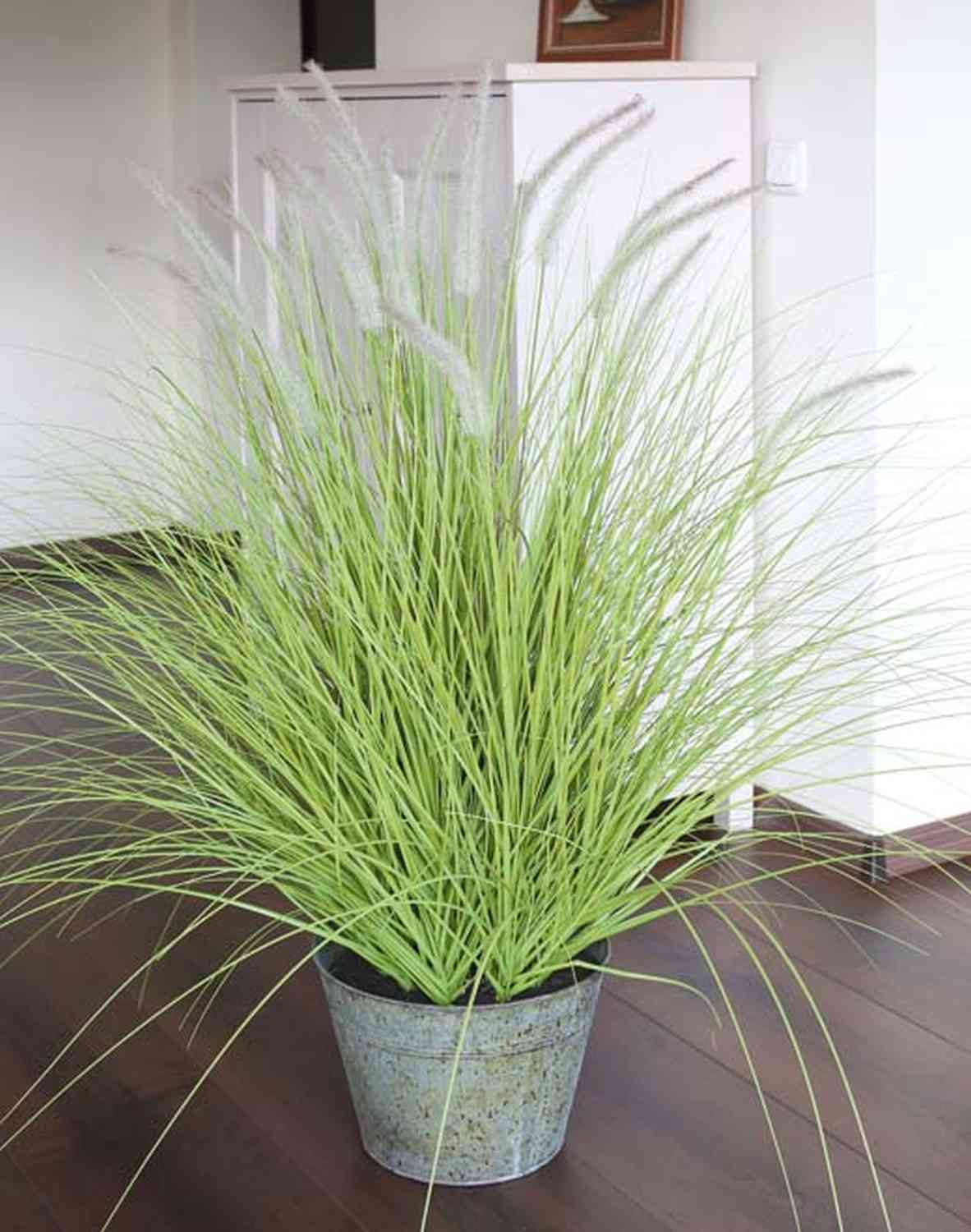 Artificial pennisetum OVIDIO, panicles, zinc pot, green, 4ft/115cm