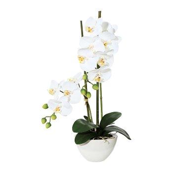 Artificial Phalaenopsis orchid DINKA in ceramic bowl, roots, white, 20"/50cm