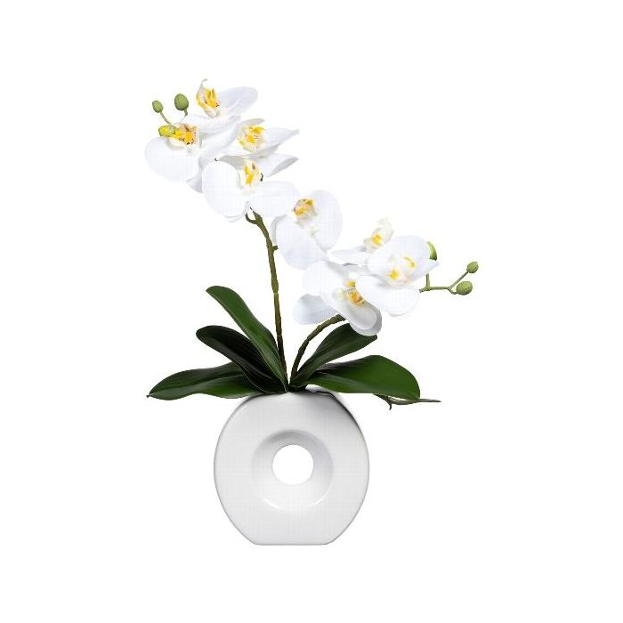 Artificial Phalaenopsis orchid DRELMOR, ceramic vase, roots, white, 14"/35cm
