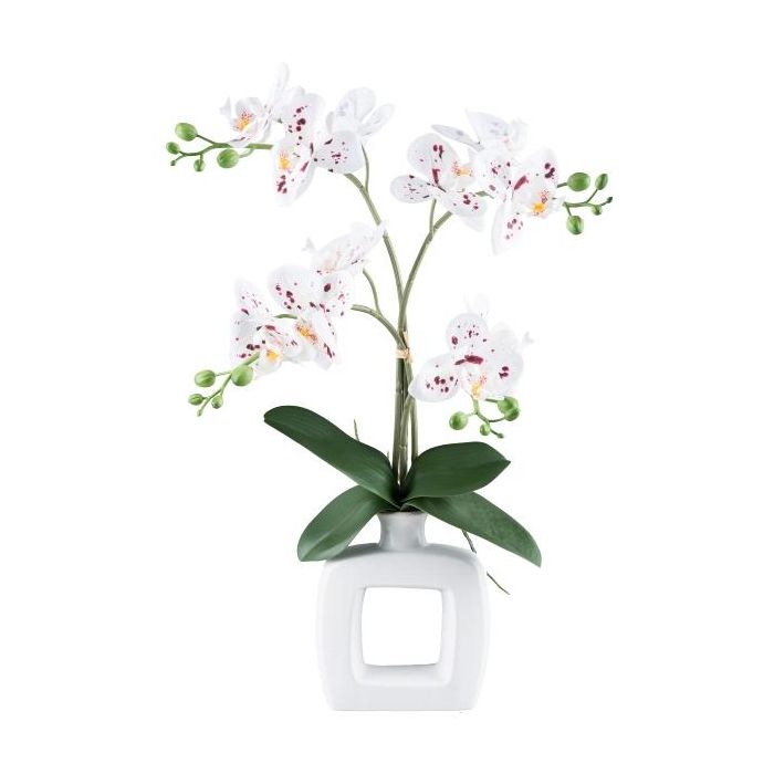 Artificial Phalaenopsis orchid DRUKLON, ceramic vase, roots, white-red, 16"/40cm