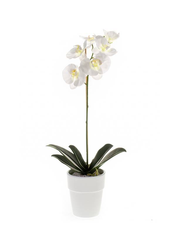 Artificial Phalaenopsis orchid ISIS, ceramic pot, white, 22"/55cm