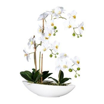 Artificial Phalaenopsis orchid JELTRON, ceramic bowl, roots, white, 24"/60cm