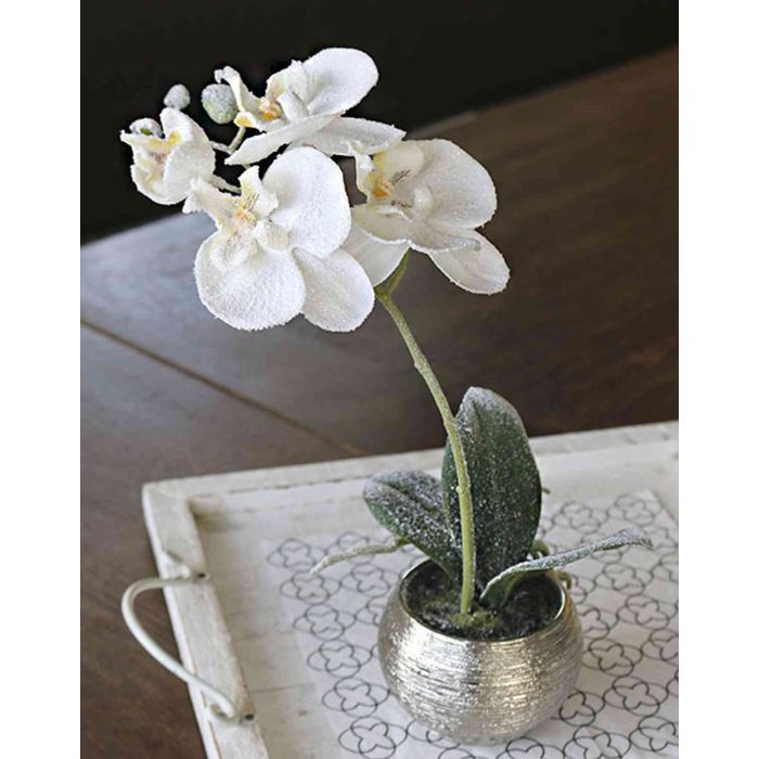 Artificial Phalaenopsis orchid KAREN, decorative pot, frosted, white, 14"/35cm