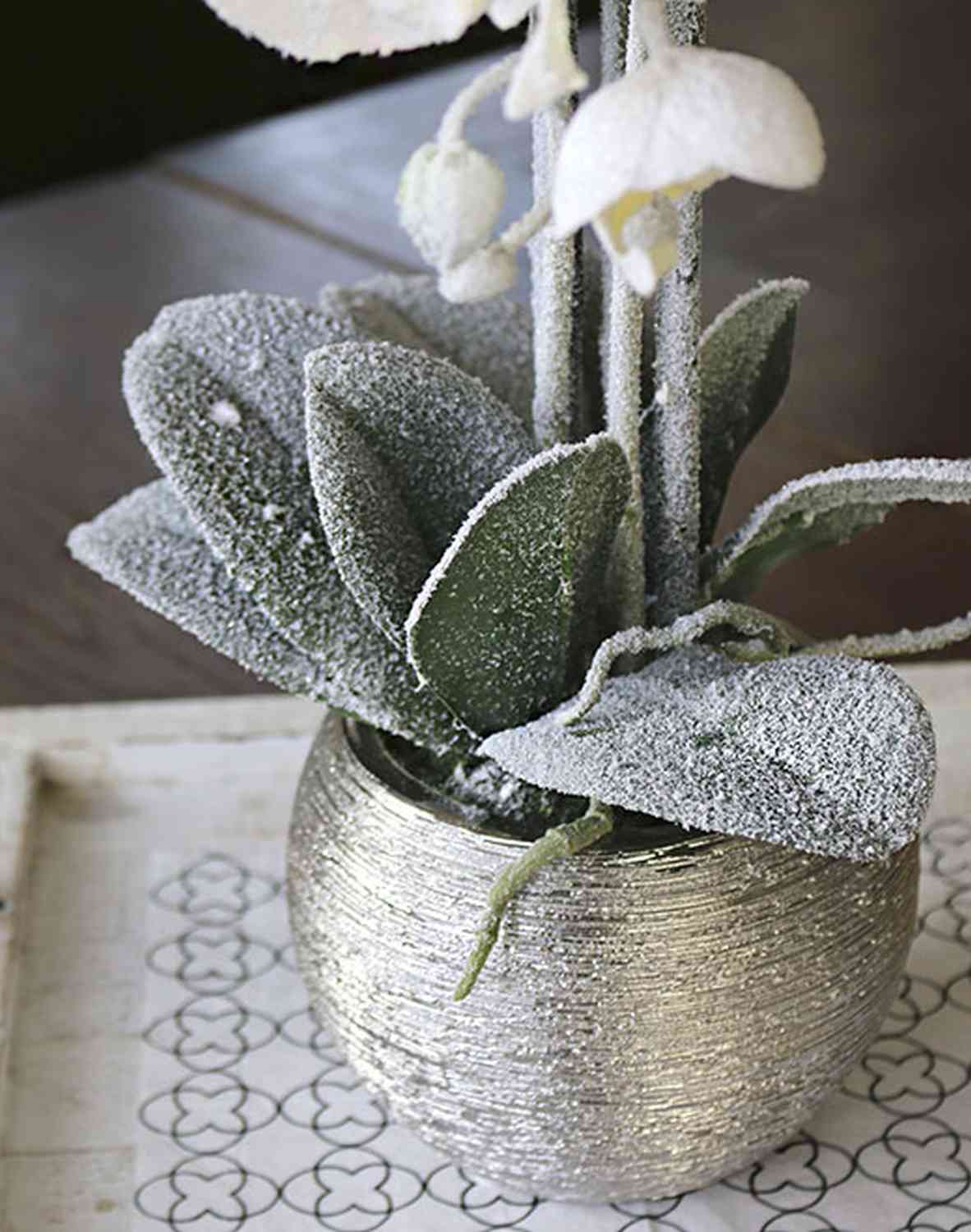 Artificial Phalaenopsis orchid KAREN, decorative pot, frosted, white, 24"/60cm