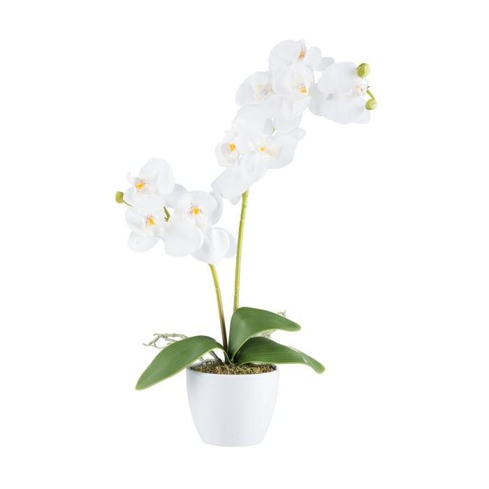 Artificial phalaenopsis orchid KRUZBER, ceramic pot, roots, white, 22"/55cm