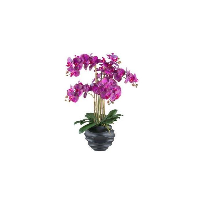 Artificial Phalaenopsis orchid STONFER, black decorative pot, roots, purple, 28"/70cm