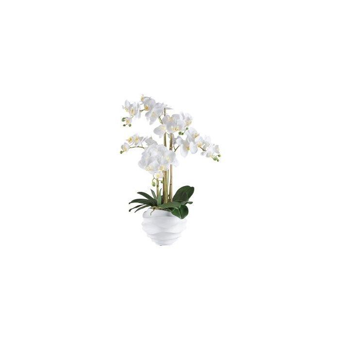 Artificial Phalaenopsis orchid STONFER, white decorative pot, roots, white, 28"/70cm