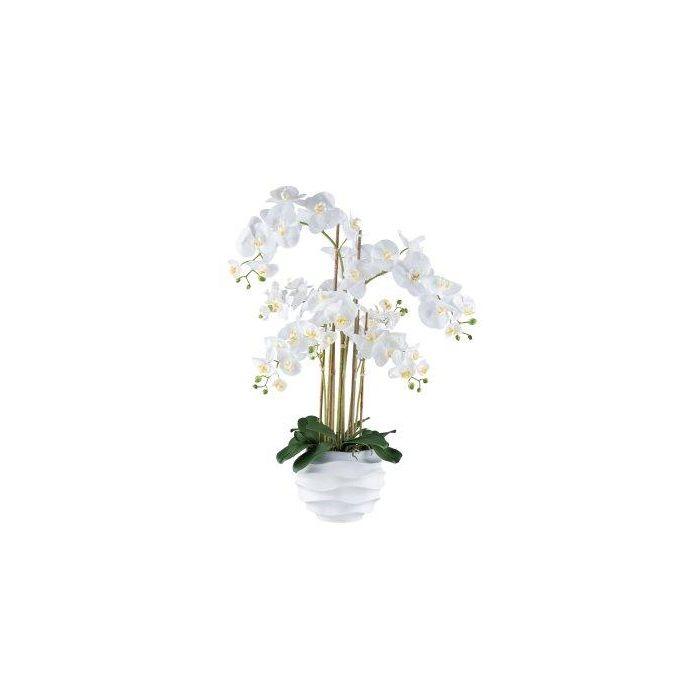 Artificial Phalaenopsis orchid STONFER, white decorative pot, roots, white, 3ft/90cm