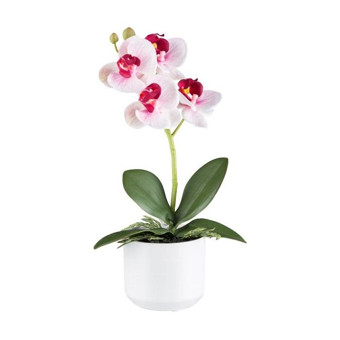 Artificial Phalaenopsis orchid WERKAN, ceramic pot, roots, white-fuchsia, 11"/27cm