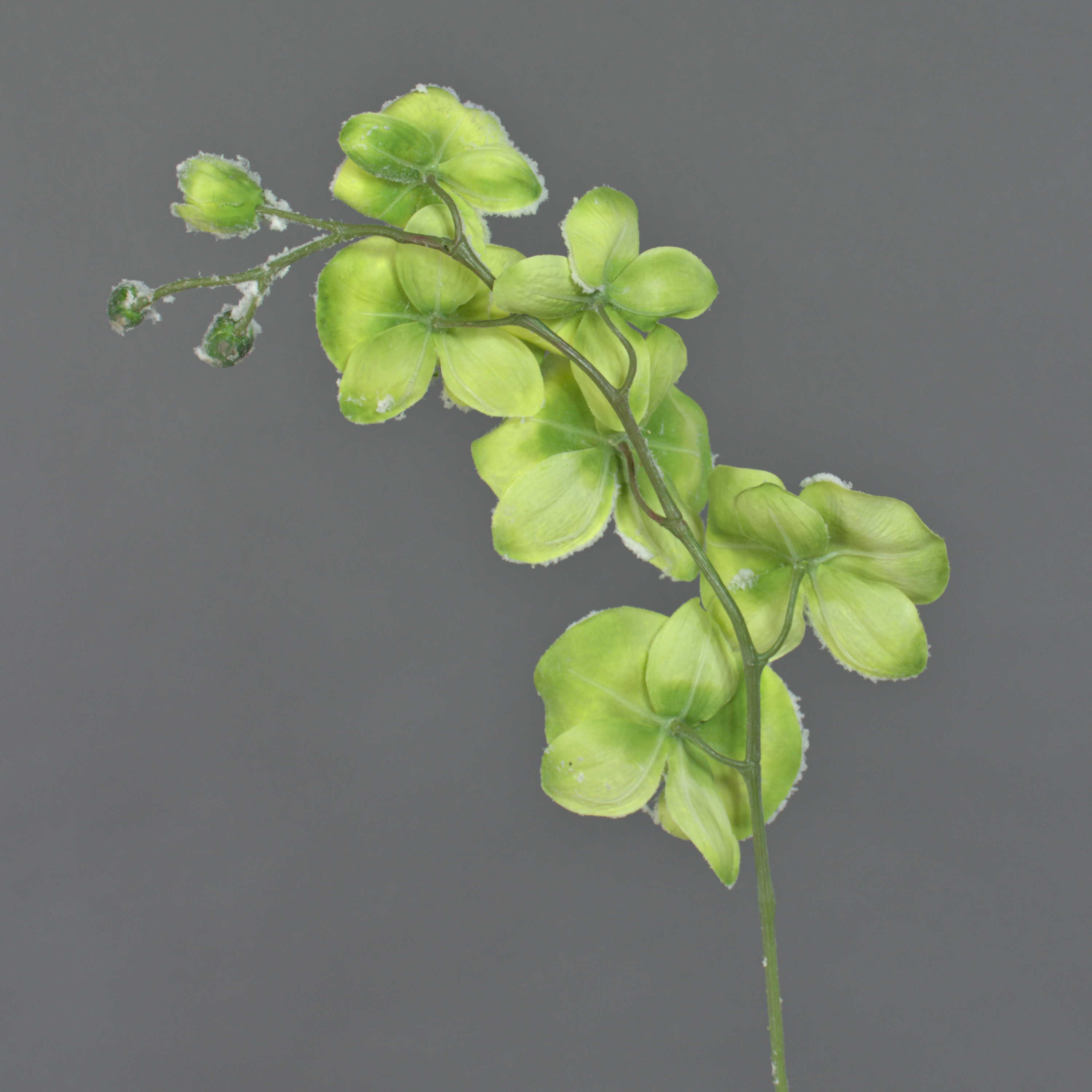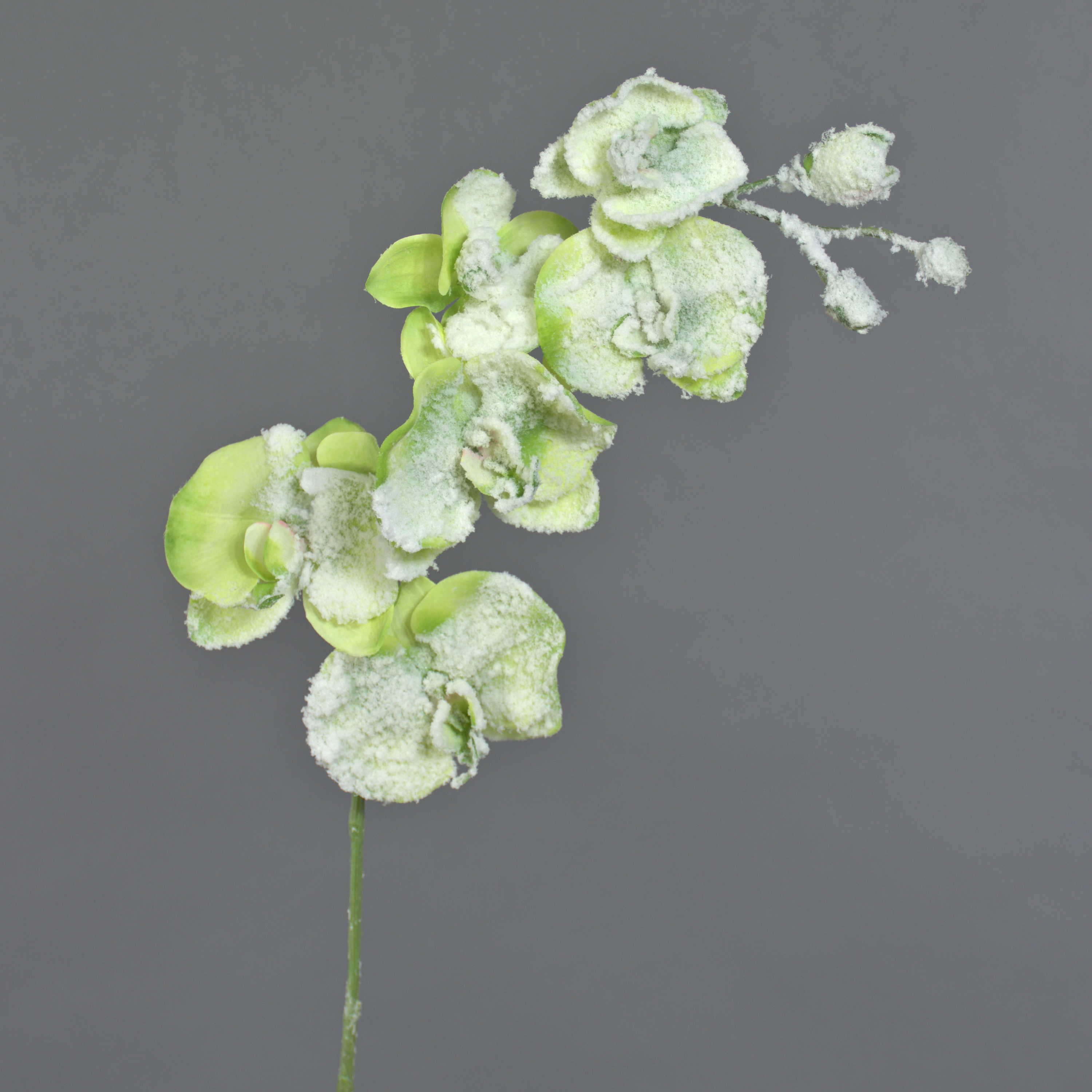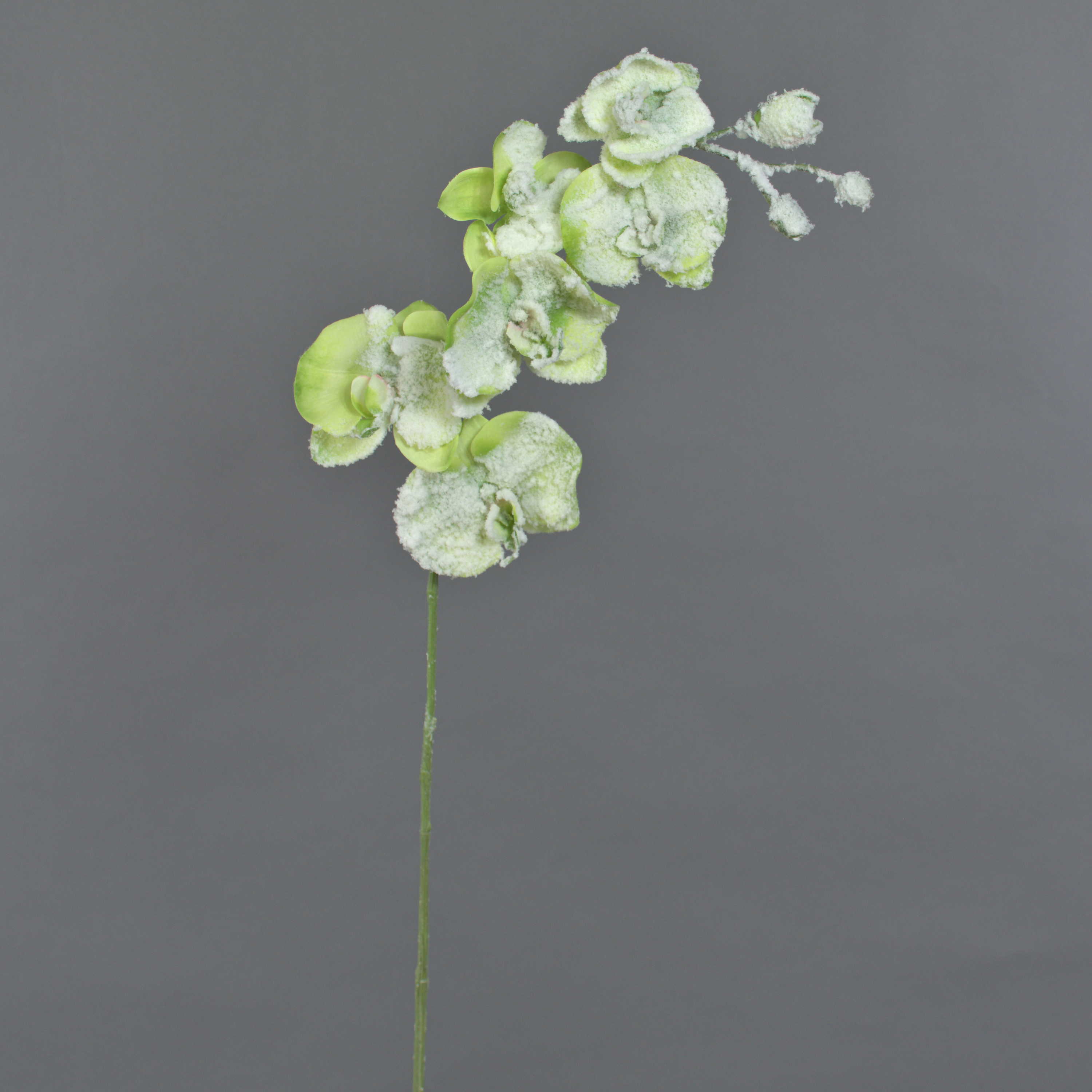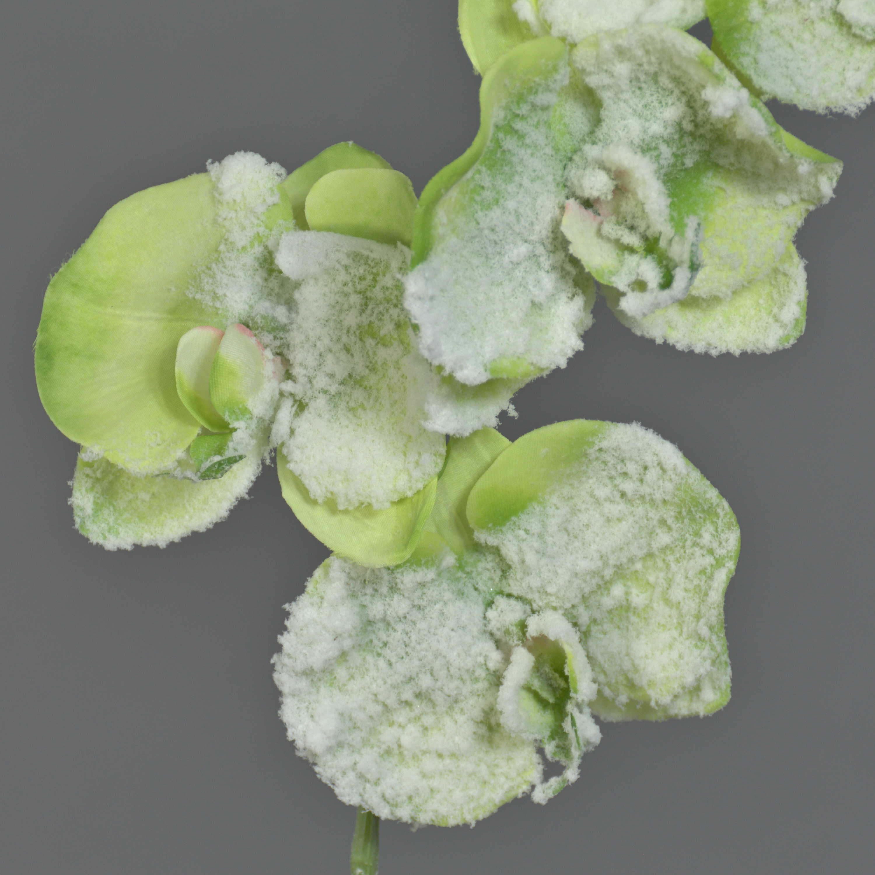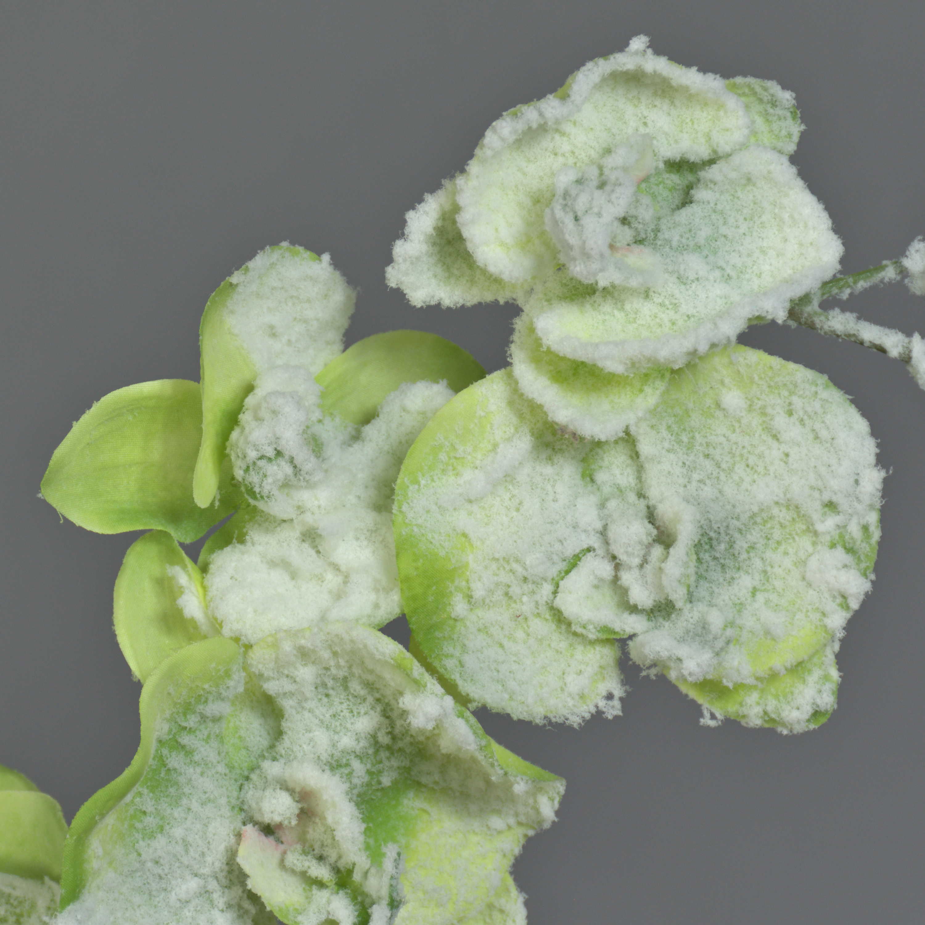 Artificial phalaenopsis spray MYRIA, with snow, green, 30"/75cm, Ø2.8"-3.1"/7-8cm